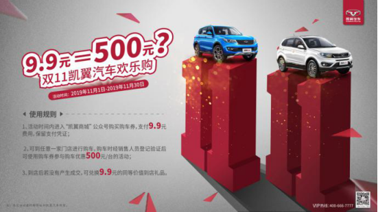 每年一度的“双十一”狂欢节即将开启,沉迷“盖楼”的大家都在摩拳擦掌积攒着各式福利,心仪的商品也早已躺在了购物车中,为接下来的血拼做好准备。凯翼汽车也已率先开启“狂欢促销”模式,让消费者提前享受“买买买”、“剁手也心甘”的快感。 双十一购车福利9.9元抵500元 凯翼汽车震撼推出“双11凯翼汽车欢乐购”活动,消费者可通过关注官方公众号或扫描二维码等方式进入凯翼商城,仅需支付9.9元,就可购得500元购车券,用于抵扣线下任意4S店的购车费用。即使消费者不购车,礼券也可以在4S店用于换取等值礼品。凯翼汽车双11不搞噱头不玩套路,让消费者真实体验凯翼汽车优越品质和贴心化的服务同时,实实在在享受到价格上的福利。 热门爆款惊喜降临 自凯翼X3五周年纪念版车型推出以来,市场反馈好评不断。其“现金钜惠10000元 仅售5.39万”的福利政策,在各地方车展及终端门店都吸引了大量消费者的关注,斩获不少订单,而优秀的销售业绩背后自然也离不开其优秀的产品力。 凯翼X3五周年纪念版搭载1.5L自然吸气发动机,燃油经济性表现出色。外形年轻动感,轮圈设计威猛大气,电动调节外后视镜更显酷劲十足。在智能配置方面,标配了10.1吋中控屏幕、7吋TFT仪表盘、倒车影像、智能linkage-screen多屏联动、TPMS胎压监测等。炫酷的外观、强劲的动力、出色的燃油经济性和智能化的配置,仅售5.39万,超高的品价比令广大消费者心动不已,受到广大消费者的青睐也在情理之中。 各式钜惠接踵而来 除9块9抵500元购车券活动及凯翼X3五周年版钜惠10000元的购车福利外,凯翼汽车全系还推出了其他一系列豪礼活动,包括: 现金礼:全系车型至高优惠22000元,实实在在的现金让利,购车更实惠; 金融礼:全系车型均享超长36/24期0利息,减轻购车资金压力; 置换礼:全系车型可获至高4000元置换补贴,换车省钱更省心; 保养礼:全系车型可享终身免费保养,轻松解决养车烦忧; 质保礼:全系车型发动机10年/100万公里超长质保,出行更安心; 专享礼:2019款凯翼X5专享礼包 ,专属定制四件套(立体包围脚垫、前后护杠、流媒体后视镜、LED前大灯光源),靓车更炫酷; 经纪人:加入凯翼经纪人,至高享万元佣金,凯翼给忠实用户开放更多可能,提升自身价值。 双11即将到来,各大车企也纷纷打出各种优惠活动,凯翼汽车亦紧跟市场步伐,在提供优质产品和服务的前提下推出了一系列优惠力度超前的举措,诚心诚意为消费者的切身利益考虑,我们也期待凯翼汽车在后期的市场表现中越来越好。 |