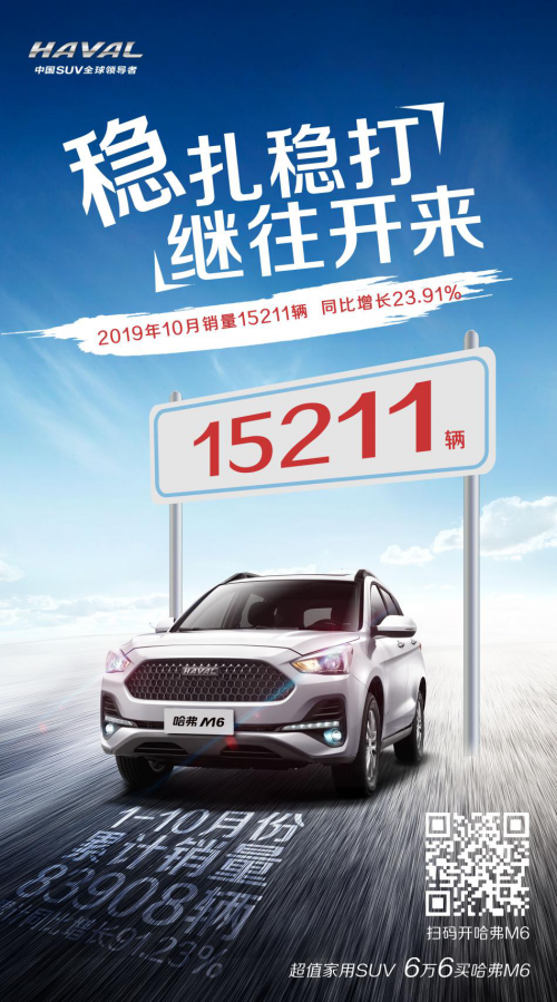 哈弗M6 10月销量再冲新高!继9月销量突破1.5万辆之后,哈弗M6后劲十足销量持续攀升,于10月份迎来“五连涨”!近日,哈弗公布了2019年10月销量,哈弗M6销量为15211辆,同比劲增23.91% 。1-10月份哈弗M6累计销量已达到83903辆,累计同比猛增91.23% ,继续领跑家用SUV市场!这一数据在车市阵阵“寒意”的当下显得尤为夺目,在获得消费者认可和信赖的同时,哈弗M6的逆市上扬也大大提振了自主品牌的竞争信心。这让我们看到,对于消费者认可的产品而言,无惧寒冬无畏前行。 由于国六排放提前实施、新能源补贴退坡,合资品牌市场下探,导致车市竞争进入白热化,“金九银十”热潮降温,销量略显失色。根据乘联会公布的最新一期汽车销量数据显示,2019年10月,乘用车厂家零售销量同比下跌3%,乘用车厂家批发销量同比下跌6%,跌幅相比前几个月有所收窄,市场出现回暖迹象。 虽然大环境萎靡萧条,但哈弗SUV却逆势走高,这一方面得益于哈弗SUV坚持聚焦战略,集中优势资源打造精品SUV,为产品注入了独特的核心竞争力,旗下超值家用SUV哈弗M6更是凭借超值、实用坐上了家用SUV市场的头把交椅。 作为一款为家庭用户量身打造的SUV车型,哈弗M6拥有满足多成员出行的超大空间,长达2680mm的超长轴距不仅赋予了哈弗M6合理的内部乘坐空间,可扩展至2010L的后备厢空间大大提升了载物能力,为家庭出行和初创事业提供了更加合理的用车解决方案。另外,哈弗M6丰富的配置也令人一见倾心。8英寸彩色大屏、多功能方向盘,同级独有的双温区自动空调+后排空调出风口、无钥匙进入+一键启动系统等配置,以及上坡辅助、陡坡缓降等实用功能都为消费者带来越级的用车体验。 不仅如此,哈弗M6搭载的1.5T涡轮增压发动机+7DCT速湿式双离合或6速手动两组黄金动力组合,保证了强劲的动力输出和畅爽的驾驶感受。高刚性笼式车身、高品质钢板,以及ESP车身稳定系统、TPMS智能胎压监测等智能驾驶辅助功能,则大大提升了行车安全性。为了降低购车门槛,哈弗M6还推出了“1+5=6”超值金融政策,首付只需1.5万元起即可将新车全包落地开回家,享受5年超长贷款,日供低至43元! 今年以来,哈弗M6车主已逼近十万之众,高保有量的这背后消费者是对哈弗M6“超值”“实用”的高度认可。表明在家用SUV市场,哈弗M6已经凭借超强的产品实力和经济实惠的用车成本,成为家庭用户的信任选择。 10月哈弗M6以稳扎稳打的姿态建立了可靠的销量堡垒,为低迷的中国车市注入了一针强心剂。同时,凭借超强产品力,哈弗M6逐一解锁空间、配置、动力、价格等家庭用车痛点,是真正适合家用的明智之选。未来,仍将一如既往为消费者提供“超值家用”的产品和服务。 |