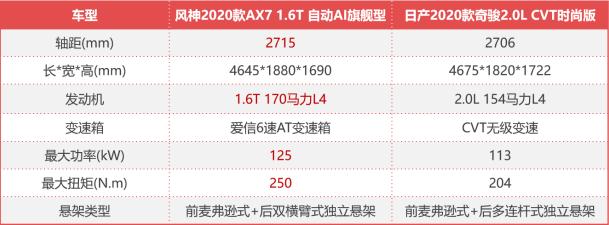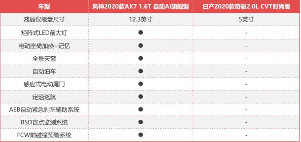 “这个双十一,你的购物车都清空了么?” 随着一年一度网络购物狂欢节的到来,双十一成为人们茶余饭后怎么也绕不过去的话题,从各大平台的统计数据来看,网友消费升级的趋势愈加明显,无论是线上购物的商品单价还是类别,都朝着高品质高价值的方向发展。汽车消费也不例外,大家收入高了,手里闲钱也多了,对爱车的要求不再一味的满足代步,如今多数人都盯上了尺寸更大、品质更高的紧凑级车和中级车。尤其在SUV市场,越来越多的自主品牌打破十万元天花板,凭借越级表现与合资品牌掰手腕。那么,手握10万以上的预算,到底是买合资品牌和自主品牌呢? 宁要鸡头,不要凤尾? 首先,毫无疑问的是,我们可以明显看到10万元以上的SUV,合资与自主还是有很大区别的。如果以15万元为界限,10-15万区间合资集中在小型SUV,而自主则是更大更实用的紧凑型SUV。小车SUV有着自身的优势,小巧灵活、省油、通过性不差等都是它们赖以生存的法宝,紧凑型SUV则意味着更大的舒适空间和更强劲的动力操控。当然,合资品牌的机械素质和产品质量还是比自主要强的,不过,随着近年来自主品牌的发展,其在装配工艺、品质表现等方面的差距已经得到一定弥补,合资品牌的优势也就不再那么的明显。所以具体如何选择,就看您需要什么了。 退一万步讲,如果非要在同一级别车型做出选择,不考虑预算的话,合资品牌入门级车型足以买到自主品牌的高配车型,那么问题又来了:鸡头还是凤尾?下面,我们以同为紧凑型SUV、价格不是过于悬殊的东风风神2020款AX7 1.6T 自动AI旗舰型(以下简称2020款AX7)和东风日产2020款奇骏2.0L CVT时尚版(以下简称奇骏)为例,通过接下来的对比,或许你能找到想要的答案。 大车开着一时爽,一直开一直爽 相比小型SUV,紧凑型SUV最大优势在于拥有更加阔绰的驾乘空间,这也是绝大多数人选择SUV的出发点所在。从车身尺寸上来看,两款车型相差无几,2020款AX7拥有更长的轴距和车身宽度,奇骏则在车身长度和高度上略展优势。而从实际乘坐感受来看,几乎感受不到其中的差异,两款车坐进去都非常的宽敞舒适,这也是他们之所以在细分市场备受欢迎的重要原因之一,有当下流行的话来说,开大车一时爽,一直开一直爽。 动力方面,尽管是自主品牌,但得益于东风集团整合全球优质资源优势,2020款AX7搭载来自PSA集团的THP系列的1.6T涡轮增压引擎。该系列发动机根据硬件与ECU调校不同有多种动力版本,具有发力早、扭矩平台宽广且涡轮迟滞小等特点,目前主要被应用在雪铁龙、DS和标致旗下的多款车型上。而此前宝马和MINI亦有车型采用这一系列引擎。2020款AX7的1.6T最大功率170马力,峰值扭矩250牛·米,与之匹配的是主打平顺和可靠性的爱信6速手自一体变速箱,无论是驾乘操控,还是燃油经济性,都表现出不俗的实力。 相比之下,奇骏长宽高分别为4675/1820/1722毫米,轴距为2706毫米,搭载2.0升自然吸气发动机,最大功率分别为154马力,匹配CVT变速箱。整体表现中规中矩,无论从动力参数,还是实际驾乘感受,奇骏相比2020款AX7并不如此前想象中有优势,但毕竟来自东风日产这一颇具市场号召力的合资品牌,凭借着品牌优势很容易被更多的消费者所认可。 颜值仁者见仁,科技“智”者见智 外观从来都是仁者见仁,2020款AX7采用“几何交互”设计理念,追求棱角分明,在横贯式尾灯、悬浮式车顶等一系列时尚元素的修饰下,整车视觉效果相当新潮时尚,足够归入“高颜值”的队伍序列。 尽管奇骏在外观设计方面比较保守,并没有采用过多时尚元素,但标志性的日产最新家族式设计风格,符合大多数消费者的审美。或许你会觉得有些审美疲劳,但这样的设计语言确实堪称经典。 进到2020款AX7的车内,主打科技感和设计范的它也令人眼前一亮。中控台采用环抱式设计,上部以软质搪塑材质包裹,档次感和质感俱佳。全液晶仪表分辨率较高,支持大量先进功能,除常规的速度、转速、油耗、胎压显示等之外,还可显示导航。中控屏为全系标配的10.25英寸高清液晶屏,分辨率达到了1920*720,硬件上是四核处理器+4G内存+32G储存的配置,界面简洁易上手。 最新升级的windlink4.0车机系统,在延续原有声纹识别登录、手势“飞屏”双屏互动、语音百科等实用功能的同时,联合酷我、喜马拉雅为车主定制独家车载VIP会员专属权益,并赠送一年免费VIP会员使用,同时,增加组队和路书、品牌专区导航和个性化设置主题壁纸等功能,更显人性化和科技化。 奇骏则延续了日产给消费者留下的实用、温馨的印象。采用双色设计的内饰和软性材质包裹很好突出了居家氛围,操作按键也是非常顺手。多媒体系统搭载了日产最新的日产智联系统,功能尽管还算丰富,但相对于更多车机系统则显得“简单”了很多,并不算是太智能。 科技配置方面,可能是两款车型最大的差距所在,2020款AX7不仅拥有矩阵式LED前大灯、电动座椅加热+记忆、自动泊车、感应式电动尾门等诸多舒适功能,更有AEB自动紧急刹车辅助、BSD盲点监测、FCW前碰撞预警系统等智能安全科技,其配置之丰富堪比入门级豪华车型。对比来看,奇骏则略显寒碜,不仅连天窗、中控彩色液晶屏都没有,甚至自动巡航等基本舒适配置也没有出现,当然,考虑到对比车型中2020款AX7为顶配车型,奇骏为乞丐版车型,两款车型配置基本不在一个档次,呈现出一边倒的局面也可以理解。 省钱才是硬道理,不小心赚