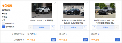 另一方面,从上表对比,我们不难看出,在智能安全方面,2020款哈弗F7搭载了L2级自动驾驶并新增了TJA交通拥堵辅助、ICA智能巡航辅助及LCK车道居中保持辅助等智能驾驶辅助配置;同时,2020款哈弗F7还装备了降低事故风险的并带有行人识别的自动刹车系统、倒车车侧预警、TSR限速标志智能识别、并线辅助、车道偏离预警、疲劳驾驶探测、ACC自适应巡航功能、360度全景影像等新功能,这些功能大部分现代ix35都并未具备,本田CR-V则完全不具备。 通过三款车的智能科技对比,可以看到智能化、科技化是哈弗F7的“独门利器”,小编认为对于一名年轻用户以及看重智能科技配置的“死忠粉”,会普遍一边倒地选择2020哈弗F7。