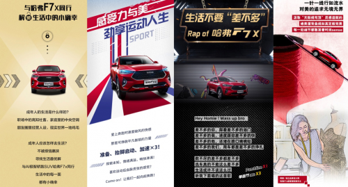 随着信息爆炸和竞争加剧,当下正处于一个“酒香也怕巷子深”的时代。产品力是营销的根基,但如何发力营销,才是在红海竞争中脱颖而出的关键因素。随着消费群体趋于年轻化,同时传播渠道不断丰富,各大车企以花式营销、全新玩法不断抢占市场“头条”。似乎,会玩已成为了汽车营销的标配。但事实证明,在花式玩法之外,那些善于创新并真正达成与消费者共鸣的汽车品牌,往往最得人心。 对此,作为中国SUV全球领导者,哈弗给出了汽车营销的最优解。全新趋势之下,哈弗精准捕捉年轻一代的关注点,在营销上频频出招,直击市场要害。而作为哈弗首款轿跑SUV,哈弗F7x不仅凭借对年轻化以及跨界风格的极致演绎,成功吸引“泛90后”的热烈关注,成为汽车市场的新晋“网红”,更通过在营销方面的全面发力和创新玩法,与年轻群体同频共振,不仅让中国“Z世代”眼前一亮,更触动海外用户的感官神经,成功风靡海内外市场,让汽车营销成为了一种全球文化狂欢。 上市即“撩人” 以体验式营销圈粉90后 在全新的消费时代下,汽车营销已逐步从传统营销模式向体验营销模式转变。哈弗F7x深刻领悟到,在数字时代,汽车营销不是简单社交媒体的几何叠加或低维组合,而是一个生态化的、以顾客体验为中心的信息价值链。 上市之初,哈弗F7x就以全球首创“一车四上市”的体验式场景营销方式,不但为年轻人群带来全新的产品认知体验,更在潜移默化中增强了消费者对哈弗F7x年轻化属性的认同,同时也为汽车圈的年轻化营销提供了全新的教科书级范本。其中,极智潮玩版在奶油田音乐节中炫酷上市,型格美学在活力与激情的释放中得到“加成”,将颜值的商业价值发挥到极致;而极智科技版车型在RNG电竞中心上市,极客青年们在车机系统上“组队开黑”,让哈弗F7x的智能网联系统在沉浸式的场景中淋漓展现;极智运动版车型上市,更是联合国际铁人三项赛,让年轻人在极限运动中,真正领略哈弗F7x的极致运动性能;而哈弗F7x性能版则在全球社交战略发布会上重磅上市,哈弗F系首席潮流体验官余衍林及众多网红均为其疯狂“打call”。国际明星编舞师余衍林自带的洒脱、潮酷、运动的形象标签,很好地诠释了哈弗F7x性能版天生高能的无限魅力。 哈弗F7x极智潮玩版上市发布会暨奶油田音乐节Pre-party 哈弗F7x极智科技版上市发布会现场车机电竞Battle 哈弗F7x极智运动版上市 “国际铁人三项”比赛现场 哈弗全球社交战略发布会现场网红小姐姐为哈弗F7x性能版站台 在这个需要“搞事情”才能获得高曝光的营销时代,哈弗F7x用想象力打破传统发布会互动性低、新鲜感低的陈旧模式,通过大玩体验式场景营销,一举突破行业对新车上市的固有认知,令人耳目一新。 以“更有料”的营销方式 打好“线上+线下”组合拳 曾几何时,汽车营销普遍呈现套路化:时不时穿越沙漠、郊外景点打卡游、演艺节目加促销等等,不一而足。当消费者看腻甚至看透传统的营销套路,与其循规蹈矩、佯装年轻,不如深刻思考,独辟蹊径,从年轻人的所想所需而出发,以更创新、更有料的营销方式,去打动目标群体。对此,哈弗F7x凭借线上和线下的联动,真正创造出了有趣、有料的内容营销,让年轻人自发加入,并形成深度传播。 随着传播渠道及传播环境的变化,一味固守陈规只会在信息爆炸时代中被埋没,只有独辟蹊径,以更加social、更创新化的营销方式,才能抢人眼球。在线上营销方面,哈弗F7x摆脱了固有的营销模式,通过手绘漫画、创意形象、快闪视频等创新形式,不仅生动展现了产品优势,更实现对年轻人的深度对话,引爆年轻“朋友圈”,真正与年轻人玩在一起。多元化的营销打法,将哈弗F7x的产品形象提升至新高度,并与目标受众达成了情感共鸣。 线下方面,哈弗F7x通过靶向精准的一系列营销事件,打透年轻圈层,引发刷屏级的关注,从而实现在终端市场的逐步扩张。从世界级campaign,到运动狂欢,再到终极赛道挑战,哈弗F7x正在逐步夯实营销阵地,从而占领更多市场。5月17日,由17辆哈弗F7x组成的车队,在俗称“大七环”的首都环线高速上,创造了“世界上自动驾驶车队行驶距离最长”的世界纪录,通过世界级营销campaign诠释了中国智造的力量,使哈弗F7x的极智科技更加深入人心。另外,哈弗F7x还与知名运动APP悦动圈联合发起“全速劲擎跑”活动,使运动风暴席卷广州、济南、西安、重庆四大城市,并通过汽车与体育的跨界结合,产生了“1+1>2”的营销化学反应。前不久,在赛道王者挑战中,哈弗F7x性能版先后打卡全国三大专业赛道,成功刷新了中国轿跑SUV的最快圈速纪录,不仅有力坐实了哈弗“地表最强15万级轿跑SUV”的王者地位,更以真实成绩为背书,征服年轻消费者。 哈弗F7x挑战“大七环”创“世界上自动驾驶车队行驶距离最长”世界纪录 哈弗F7x“圈速劲擎跑”活动现场气氛火热 哈弗F7x赛道王者挑战 通过一系列“线上+线下”组合拳,哈弗F7x以更创新、更有料的营销方式,实现目标市场的逐步渗透,并真正打透年轻圈层,实现产品价值的有效传播。 以海外营销打开“本土化”市场 哈弗F7x剑指全球 自主出海,是中国车企突围红海竞争、拓宽发展路径的必然趋势。但如何真正走入海外市场,不断提升产品认知度,则是所有中国汽车品牌都需面对的共同难题。因此,要想打好海外营销这场硬仗,就不能生搬硬套在国内的主流营销