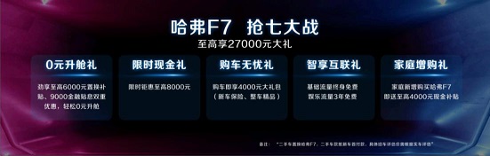 冬天虽然寒冷,但能让人温暖、快乐的东西有很多,比如客厅窗下的阳光、热腾腾的火锅、毛绒绒的衣服,还有暖意满满的节日,比如圣诞节、元旦节和春节,更有让人进入买买买模式的购物节!“双十一”刚过不多久,“剁手党”的“双十二”狂欢季又来了!早就装载好了“购物车",蓄势待发的亲们,想必在12月12日这天已经出手疯抢一场了吧?但不管你买再多生活用品和电子产品,如果还没有一辆称心的好车,那么离暖暖的理想生活始终差了一步。 现在机会来了,今年“双十二”买好车,同样有令人眼馋的大福利。比如,哈弗新一代旗舰车型哈弗F7就以“五重购车大礼”温暖来袭,让新老用户们尽享钜惠!对于年底有购买SUV打算的朋友来说,正是2019年最后的购车良机! 智领出行生活 哈弗F7年终暖心购尊享“五重大礼” 在上市一年左右的SUV全新车型里面,哈弗F7的市场表现抢眼,稳居第一阵营。短短一年时间内,哈弗F7销量已近15万辆,在刚刚过去的11月,哈弗F7月销量达14015辆,2019年前11月销量更是突破了13万辆,受用户喜爱程度可见一斑。 新近上市的2020款哈弗F7,全面升级了智能科技配置,引领智能出行生活新潮流。2020款哈弗F7共7个款型,厂商指导价11.18—15.18万元,新车现已全面到店,即日起购车即享受以下“五重购车大礼”: 第1重:0元升舱礼:劲享至高6000元置换补贴、9000金融贴息双重优惠,轻松0元升舱; 第2重:限时现金礼:限时钜惠至高8000元; 第3重:购车无忧礼:购车即享4000元大礼包(新车保险、整车精品); 第4重:智享互联礼:基础流量终身免费,娱乐流量3年免费; 第5重:家庭增购礼:家庭新增购买哈弗F7即送至高4000元现金补贴。 以上五重礼中,置换政策与增购政策不能同时享受,这样算下来,至高可享27000元综合优惠,凭借不俗的产品竞争力及5重钜惠加持,相信2020款哈弗F7年底将在国内SUV市场再掀波澜! 2020款哈弗F7颜值、智慧全面升级 所有的诚意只为离你更近 哈弗F7定位于“AI智能网联SUV”,以太空科技美学设计的智美造型、傲视同级的智能科技配置、兼具动力和操控的驾驶乐趣,定义了新生代SUV的潮流趋势,而这些亮点在2020款哈弗F7身上得到再次强化,使得哈弗F7本已强大的产品力得以进一步提升,体现了对年轻用户群体的满满诚意。其中增配的L2级自动驾驶、迭代升级的V2平台智能网联系统、新增的外观涂装颜色令人瞩目。 对于泛90后来说,对于一款车的喜爱往往始于颜值,哈弗F7凭借炫酷动感的造型,令年轻人一见钟情。哈弗F7由来自路虎、凯迪拉克的国际大师西蒙斯操刀设计,设计灵感来源于星空和航天科技,繁星式中网、恒星矩阵LED大灯、彗星尾翼行车灯等细节,处处彰显时尚潮流和科技智感。整车棱角分明,车身侧面线条充满力量感,渗透出十足的运动气息。 2020款哈弗F7在原有五种颜色(旭日红、深海蓝、月影灰、银河白、太空黑)基础上又新增两款配色,AF金溢彩流光,尊贵大气,夺人眼目;G7红激情四射,更显青春活力,全面满足各路颜值控们对外观颜色的差异化需求。 在智能科技配置上,2020款哈弗F7在中高配车型上增配了L2级自动驾驶,半自动泊车以及高清360环视影像。新增的车道居中保持+车道偏离预警、TJA交通拥堵辅助、ICA智能巡航辅助等模块,共同组成了L2级别智能辅助驾驶功能,让主动智能安全配置再度进阶。新增的L2级自动驾驶能让车主在城市道路或和高速公路驾驶时,进一步放松手脚,缓解驾驶疲劳,不仅让驾驶变得更加安全省心,同时也带来了智能节油的效果。 与此同时,新车将智能网联系统迭代升级到V2平台,多媒体主机采用安卓8.0操作系统,拓展性更强。V2平台新增智能出行、智能语音、智能娱乐、智能手册、日程管理、路书、APP商店、车载WiFi、违章查询等30余项功能,让智能出行更惬意。其中,在AI智能语音识别上,搭载了科大讯飞的新版系统,语音识别率为同行业最高,智能化程度也进一步提升;在智能娱乐上,2020款哈弗F7的“在线音乐”搭载了腾讯的爱听卓乐车载音乐系统,拥有千万级曲库;在智能出行上,2020款哈弗F7搭载了新版高德车机地图,智能导航及路书等,功能更为强大。 小结 作为主打年轻人市场的哈弗SUV新旗舰,哈弗F7自去年11月底上市后即成“爆款”,其取得市场成功的根本原因在于精准的年轻人定位和由“颜值、智慧”构成的卓越产品力。2020款哈弗F7从外观颜值到智能科技的升级使得综合产品力再度升级,加之多重诚意满满的现金优惠政策,使其质价比再度提升。如果你对哈弗F7这台高质比SUV心仪已久,那么现在入手正当时。 |