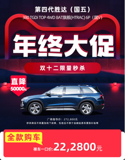 自从有了电商之后,各种购物节如雨后春笋般冒起,以洪水猛兽之势利向全民发起了购物邀约。就算你躲过了618、717、双11、黑五,万万没想到年尾还有一个双12彩蛋待开启。 对于各大商家来说,自然是不会错过年底这个收官之战,满减、优惠、公式,花样层出不穷,对于消费者来说,算法复杂程度之高,需要排列组合、需要闹钟、需要手速。 在众多花里胡哨的双12优惠活动中,北京现代就如同一股清流般的存在。今年双12,北京现代在天猫平台推出了“双12线上活动”,只要在12月31日前购买第四代胜达、昂希诺 钢铁侠版、昂希诺纯电动等秒杀车型,即可享受直降5万的超值福利。购买名图、第四代途胜两款一口价车型,可享受直降四万多的优惠。此外,购买全系车型中的任一款车,皆可获赠399元的购车津贴礼。而购买国五车型,则有机会获得最高6000元购车津贴。 不止如此,更有机会参与抽奖,赢取华为5G手机、Bose无线耳机等惊喜大礼!此次活动力度之大、车型之多,都是史无前例,绝无仅有的! 想必大家一定很关心参与活动的车型,小编特意为大家做了一番功课。 四款秒杀车型,直降五万 第四代胜达有两款不同配置的车型均可直降五万,原价26.28万元的车型,天猫秒杀价只需21.28万元。四驱版车型在直降五万后仅需22.28万元,提供黑、灰、蓝、白四种颜色供购买。 第四代胜达是北京现代旗下一款定位于“智享便捷大六座SUV”旗舰产品,它全球首次应用指纹识别、后排乘客提醒等功能,搭载集成12项ADAS功能的“智心合一”安全驾驶系统,将为消费者带来更智能、更安心的用车体验。值得一提的是,2+2+2的六座布局,更贴心周到地照顾到了家庭用户的出行。 动力方面,全新升级的Theta II 2.0T-GDI涡轮增压发动机,匹配8速手自一体变速器,打造出更充沛的驱动力。此外,第四代胜达380 TGDi TOP 4WD 8AT旗舰(HTRAC)6P版,还配备了现代汽车全球领先的HTRAC智能四驱控制系统,在不同驾驶模式下,可自动控制前后动力分配,并有ECO经济模式、SPORT动力模式、COMFORT舒适模式以及SMART智能模式可供选择。不论是日常通勤,还是远行旅途都可以体会到四驱的驾驶乐趣。二十万出头的价格买一辆大型SUV,对于二胎家庭来说,此时入手第四代胜达再合适不过。 今年九月上市的昂希诺 钢铁侠版同样享受直降五万的福利,9.9万元秒杀价就能带回家,漫威粉千万不要错过!作为全球首款以漫威英雄角色为主题设计的量产车,钢铁侠不羁的风格与昂希诺前卫的科技性能,第一次在昂希诺 钢铁侠版身上得到了完美的结合。昂希诺 钢铁侠版配备1.6L涡轮增压发动机+7速双离合变速箱,最大功率可达176匹马力,让你随时都能化身“钢铁侠”极速狂飙,尽享一路驰骋的激情。 最后一款参与秒杀直降五万的车型是上个月刚上市的昂希诺 纯电动,是合资品牌中具有卓越竞争力的一款纯电动产品。通过多次试驾活动,昂希诺纯电动也受到了业内外专业人士的高度评价和认可,是绿色出行的首选。现在18.23万元即可入手。 续航里程方面,昂希诺纯电动在综合工况下,设计续航能力超过500公里,充分缓解消费者对电动车里程焦虑的困扰。在智能科技方面,昂希诺纯电动除应用了现代汽车全球领先技术,更配备了包括LKA车道保持、SCC智能巡航在内的8项ADAS智能驾驶辅助系统,拥有手机无线充电等领先的安全及便利配置,成熟的智能驾驶辅助系统应用将全面为用户提供更安全放心的用车环境。 两款一口价车型,直降四万+ 以上的秒车车型,数量有限,先到先得!除此之外,北京现代还专推出了两款一口价车型,涵盖SUV和轿车,分别是第四代途胜和名图。 第四代途胜在直降4万多元后,只需要14.19万即可入手。第四代途胜定位于“自在掌控的智行SUV”,专为自由而来。在动力上,第四代途胜配备HTRAC智能四驱控制系统,该系统曾搭载于捷恩斯等豪华产品,用户可在不同驾驶模式下自动控制前后动力分配,带来更优秀的驾驶体验。智能配置方面,第四代途胜也堪称一流。它所搭载的百度智能网联2.0系统能够提供场景化语音人机智能交互、智能家居联动功能、智能型空气净化,以及OTA在线升级功能,还有QQ音乐等国内三大音乐曲库。充满黑科技因子的智能配置极大地满足了用户便捷出行的需求,现在入手第四代途胜,让它带你去更辽阔的远方。 如此钜惠,自然也少不了北京现代的明星家轿车,原价近16万元的新名图现在仅需11.69万元。十万出头的价格就能买到一辆B级车,买到即是赚到!新名图是北京现代为中国消费者量身打造的一款高性价比中高级车型,它时尚、大气的外观,简约又不失尊贵。 动力方面,新名图搭载1.6T+7速DCT动力总成,这套北京现代引以为傲的黄金动力组合能够轻松满足年轻人对速度与激情的向往。除此之外,新名图在智能配置上也秒杀同级,搭载同级独有的苹果Carplay和百度Carlife两套智能互联系统及智能后备箱开启功能,极大便利用户的出行。 惊不惊喜,意不意外,这诱惑,这力度,有谁顶得住?就算你是双11按兵不动的东方不buy,遇到北京现代这波操作也得心动不已。现在打开淘宝,前往天猫汽车旗舰店或者北京现代官方旗舰店,快把心动车型带回家吧! |