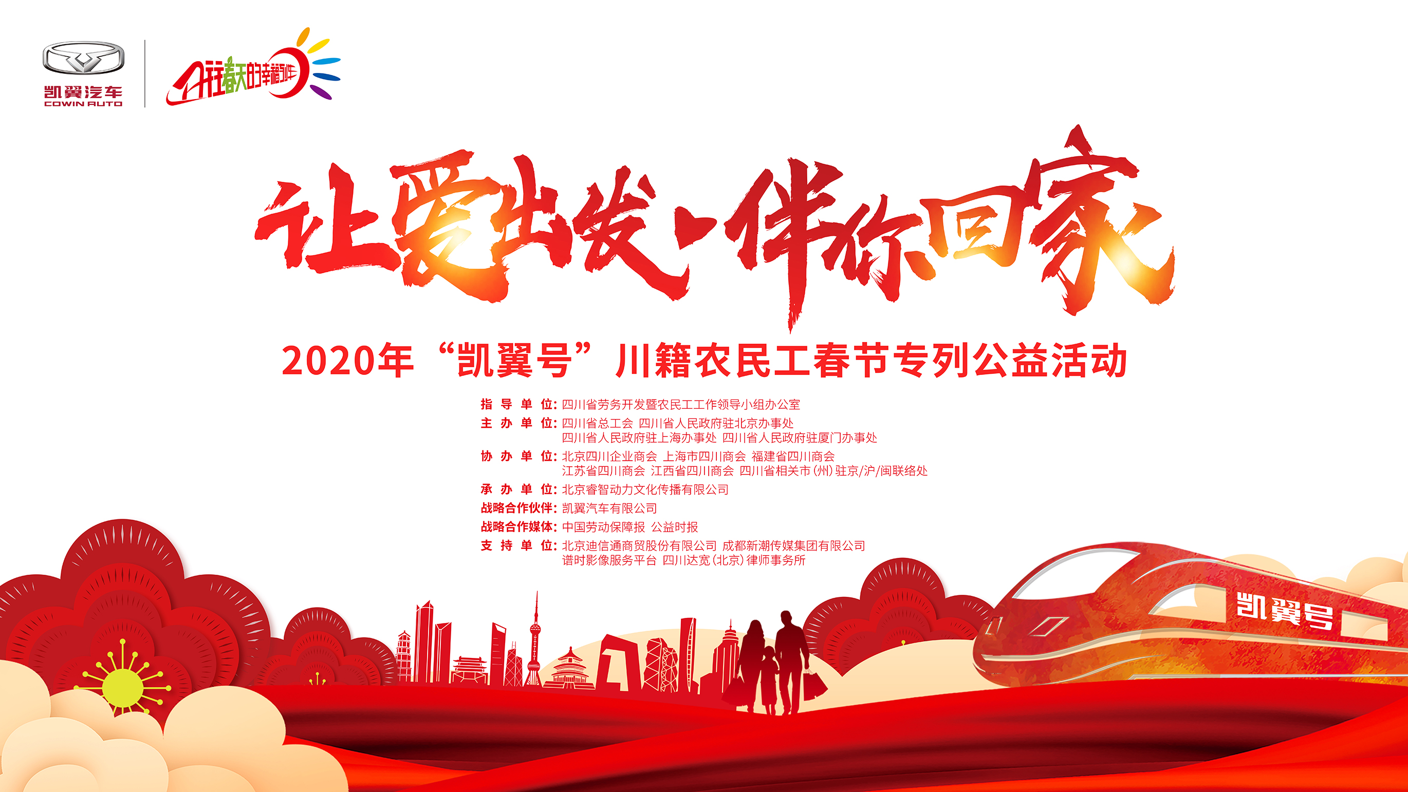 2020年春节临近,春节农民工返乡也将随着春运大幕的拉开而进入高峰。由四川省劳务开发暨农民工工作领导小组办公室指导,四川省总工会、四川省人民政府驻北京办事处、四川省人民政府驻上海办事处、四川省人民政府驻厦门办事处联合主办,凯翼汽车有限公司战略合作支持的2020年“凯翼号”川籍农民工春节专列公益活动即将启航。 让爱出发助力农民工返乡 凯翼汽车作为本次活动的战略合作伙伴,为保障农民工朋友春节期间顺利返乡,投入大量人力、物力,将服务落实到第一位,努力解决农民工切实所需。活动期间将面向全国川籍农民工重点聚集的五个省市地区:北京、上海、福建、江苏、江西,征集川籍农民工,并提供2400张免费车票,于2020年1月8日分别从北京、上海、福州、苏州、无锡、南昌等地乘坐”凯翼号”专列返回家乡。 组委会将于12月17日开通线上抢票通道,届时农民工朋友只需通过关注活动官方公众号“开往春天的幸福列车”,参与报名就有机会获得一张免费的返乡车票。活动还开通了全民助力通道,邀请社会各界人士参与到公益活动中来共同为农民工返乡助力。另外,在返乡的专列上还将开展丰富的福利活动,温暖农民工朋友们的回家路。 模范先锋践行社会责任 凯翼汽车与公益事业结缘已久。自成立之初,凯翼汽车即携手知名公益人士邓飞,与中国社会福利基金会免费午餐基金管理委员会签署了“免费午餐”战略合作捐助计划,保障祖国的花朵茁壮成长。之后凯翼汽车又联合“春蕾计划”公益机构,成为“春蕾计划爱心单位”,发起“凯翼汽车温暖助学校园行”,以务实有效的捐助形式辅助国家九年义务教育,实现失学女童的求学梦,担当起更大的社会责任。 针对生活困难的群众,凯翼汽车也是关怀备至。日前,凯翼党委成员先后走访了公司对口帮扶的贫困户,深入了解贫困户的生活状况,开展“入户送温暖”活动。为切实帮扶贫困户脱贫致富,凯翼公司还为贫困户聚居点安装路灯,并鼓励贫困户大力发展农业养殖,并提供长期专项回购支持,以解后顾之忧。凯翼汽车始终践行感恩回报社会的责任,帮助群众办实事、解难题,切实推动脱贫攻坚工作。 不忘初心的公益事业是凯翼汽车始终践行的社会责任。凯翼坚持不懈地投身公益事业,致力于打造有温度的品牌,努力成为一名积极负责的企业公民。 |