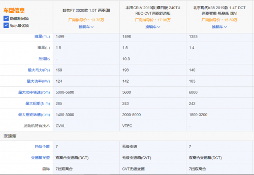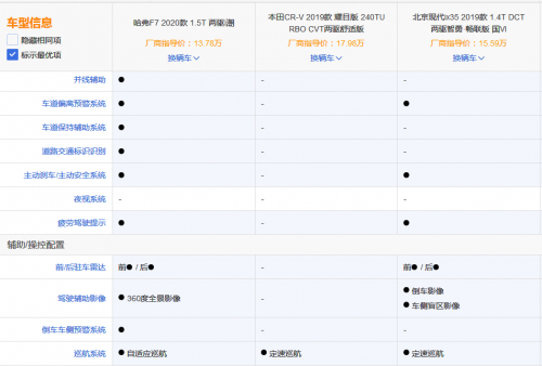 临近春节,想在年底买一辆车的用户已经开始摩拳擦掌了。15万元,是大多数年轻人的购车预算,一辆SUV,是大多数年轻人的心头之好。在15万元价格区间且热销的紧凑型SUV,我们挑出了三款车,即哈弗F7、本田CR-V和现代ix35,它们都位于SUV阵营前列,有着不俗的销量及口碑。“瞅准了一款心仪的车,可又怕买吃亏,难免在喜欢的几款车之间比较来比较去,最终迟迟下不了决定”,想必这是大多数人在买车时的纠结。现在我们以2020款哈弗F7 1.5GDIT 两驱i潮、2019款本田CR-V耀目版240以及2019款现代ix35 1.4T智勇·畅联版为例(以下简称为2020款哈弗F7、本田CR-V、现代ix35),在年轻人最为关注的外观颜值、智能科技配置、动力总成三大层面逐一对比,看看哪款更值得你入手。 活力鲜肉VS沉稳老派:你更爱哪个? 哈弗F7是哈弗F系旗舰车型,它由来自宝马、凯迪拉克的大师级设计团队打造,以太空科技美学为设计语言,整车年轻时尚,彰显“智美”潮流。大尺寸六边形进气格栅,矩阵式LED光源,贯穿式上扬腰线、C柱独特的“银河夹角”等设计都彰显出青春活力感。双边双出的尾排以及19寸大轮毂进一步突出了整车的年轻化运动风格。 (2020款哈弗F7) 2019款本田CR-V采用了本田新的家族设计语言,前脸飞翼式的镀铬饰条颇具气势。动感的车身线条与车尾处细节处理衬托出更多的年轻化元素,整体风格比老款显得更加动感流畅。但仔细端详,发现其造型轮廓仍难逃老款的式样,也有部分用户表示不太喜欢新款CR-V的尾灯。 (本田CR-V) 新款现代ix35的外观相比老款的圆润风格,增加了硬朗元素,进气格栅、前大灯与雾灯均采用新的家族式设计,比老款耐看些也多了些力量感。但就整体造型而言,ix35即使与本田C-RV相比都显得朴实而中庸,更无法与原生年轻化造型设计的哈弗F7相比。 (现代ix35) 智能互联&智能安全:谁让出行更安全省心? 综上所述,三车中,车型最新的哈弗F7采用了颠覆传统的原创智美外观设计,造型更加年轻化、潮流化一些,无疑更易赢得年轻人的喜爱。另外,值得注意的是,从车身尺寸看,三款SUV均定位为紧凑型SUV,但哈弗F7最长、最高,轴距最大,基本已达到中型SUV水平,在整车空间、尤其是后排空间上占有绝对优势。 智能化、网联化已成当今汽车功能的大趋势,那么这三款车都能给我们带来什么样的智能出行体验呢?这里我们将三车的智能科技配置比对一番。 在智能网联方面,本田CR-V几乎就是空白,让人遗憾加疑惑。现代ix35则要好一些,能实现CarPlay和CarLife功能,也有了车机导航的支持和语音识别控制功能。相比现代ix35,2020款哈弗F7的车机互联系统更加强大,其智能网联系统迭代升级至V2平台。V2平台有几大优点:它的语音和语义采用了新版科大讯飞的系统,识别更准更快;在智能出行系统上,它搭载了新一代高德地图车机版,信息全面,数据准确,同时新增了强大路书资源;在智能娱乐系统上,搭载了腾讯的“爱听卓乐”车载音乐系统,拥有千万级曲库;另外,V2平台打通了汽车和智能家居的连接和控制,并已经为5G高速移动网络的接入做好了准备。 另一方面,从上表对比,我们不难看出,在智能安全方面,2020款哈弗F7搭载了L2级自动驾驶并新增了TJA交通拥堵辅助、ICA智能巡航辅助及LCK车道居中保持辅助等智能驾驶辅助配置,让驾驶更轻松。同时,2020款哈弗F7还装备了降低事故风险的并带有行人识别的自动刹车系统、倒车车侧预警、TSR限速标志智能识别、并线辅助、车道偏离预警、驾驶疲劳探测、ACC自适应巡航功能、360度全景影像等新功能,这些功能大部分现代ix35都并未具备,本田CR-V则完全不具备。 通过三款车的智能科技对比,可以看到智能化、科技化是哈弗F7的“独门利器”,小编认为对于一名年轻用户以及看重智能科技配置的“死忠粉”,会普遍一边倒地选择2020哈弗F7。 (2020款哈弗F7中控台) (本田CR-V中控台) (现代ix35中控台) 激情VS舒适:你更想要哪种驾趣? 多数年轻用户对动力总成是非常关注的,毕竟大家还年轻,偶尔还想体会下强劲动力带来的速度与激情。2020款哈弗F7 两驱i潮搭载的1.5GDIT发动机和7速湿式双离合变速器大有来头,前者荣获“中国十佳发动机”称号,拥有CVVL技术,后者是荣膺“世界十佳变速器”,传递效率高达95%,能实现0.2秒快速换挡;本田CR-V搭载的这款240Turbo(1.5T)发动机是本田近年主推的小排量涡轮增压发动机,单从最大功率看,以142kW超过其他两车,但243N·m的最大扭矩不敌哈弗F7的1.5GDIT发动机的285N·m;而现代ix35 1.4T发动机的动力在三款车中属最弱的,对于不太追求动力的用户倒也问题不大。 凭借更为强大的扭矩值,哈弗F7在日常的起步和加速超车时,能带给人更加激情酣畅的驾驶乐趣。本田CR-V的动力性能也还不错,尤其在高速巡航的时候。如果对动力性能有较高要求,小编建议最好不要选择三款车中动力最弱的现代ix35。 (2020款哈弗F7 1.5GDIT发动机) 小结: 通过本文在颜值、智能、动力三大层面的对比,相信想在年底入手一辆SUV的年轻人已经不再纠结了。如果你更喜欢时尚潮流,并乐于享受智能科技带来的乐趣,偶尔也有激情驾驶的冲动,那么毫无疑问,2020款哈弗F7更适合你。这里需要提醒大家的是,哈弗F7不仅在产品力上表现出众,在价格上更要比日韩系的两款车便宜不少,超高性价比足以见其对年轻人的满满诚意。值2020款哈弗F7推出之际,哈弗还推出了“0元升舱礼、限时限金礼、购车无忧