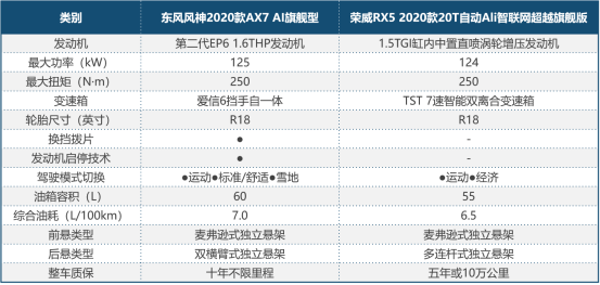 随着中国汽车工业的崛起,自主品牌汽车的品质越来越受到消费者的肯定。而10万+的自主紧凑型SUV产品,凭借动力、空间、智能、配置和亲民的售价,更成为很多消费者家用车的首选。 智能车机,作为自主品牌的一大利器,通过不断升级换代,更练就了媲美Siri的聊天技能,智能表现超越同级的合资品牌一大截,深受年轻消费者的喜爱。近日,东风风神2020款AX7完成了其WindLink4.0人工智能车机系统的升级,升级车主可获赠1年期喜马拉雅和酷我音乐的VIP会员,增加组队、路书、导航及个性背景设置等功能,让这款早就以“智能”、“聪明”的个性叱咤车坛的国产SUV再次刷屏。而另一款中国“聪明车”荣威2020款RX5,也有着良好的口碑和用户基础。2020款AX7和2020款RX5,均可通过语音控制车窗、天窗开启、语音搜过目的地、声控导航和娱乐系统,你说它做,解放双手,它们代表着自主品牌车机系统的较高水平,可以说是自主品牌“聪明车”中学霸级的存在。 那么,在“聪明”之外,这两款车的其他表现如何?我们以价格相近的东风风神2020款AX7 1.6T自动AI旗舰型(简称2020款AX7,13.39万元)同荣威RX5 2020款20T自动Ali智联网超越旗舰版(简称2020款RX5,13.88万元)进行对比,看看这两款“聪明”SUV的实力如何。 激情无限,为青春梦想加速 发动机,被称之为一辆汽车的心脏,正是因为它提供了驱动一辆车行走的力量,它的质素决定一辆车最基本的品质。东风风神依托东风集团的深厚资源,为2020款AX7再次选择有“王子发动机”的美誉的第二代EP6 1.6THP发动机,这台诞生自PSA和宝马之手的作品,屡获“国际年度发动机”大奖,有宝马专利的TVDI技术赋能,加速性能和燃油经济性不容小嘘。而荣威RX5所搭载的这款名为1.5TGI缸内中置直喷涡轮增压发动机,是上汽“蓝芯战略”的重磅动力产品,250N.m的最大扭矩和2020款AX7的参数持平,平均油耗更低至6.5L/100km,表现不俗。 一颗是合资动力,一颗是自主动力,从数据上看,这两款发动机都很优秀,它们匹配各自的变速箱,从驾驶体验上来说,均能获得平顺的加速性能,可以看出这两个品牌对于动力调教的功力。值得一提的是,2020款AX7越级搭载换挡拨片和电子换挡系统,赋予驾驶者更多速由心生的驾驭快感,比2020款RX5的传统档把要高级很多。且2020款AX7拥有多种驾驶模式,尤其是雪地模式对于北方车主而言,是一个很有帮助的功能。 两车的底盘设计有各自特点,后悬结构也有较大的不同。众所周知2020款AX7采用的是本田CRV底盘,经过欧洲底盘专家指导调教,并采用欧姆龙第四代转向器,兼顾操控和舒适,不论铺装路面还是山路,都能轻松应对。2020款RX5依托上汽的资源,底盘调校采用了偏向舒适的设定。 稳重体贴,做有安全感的暖男 30年前,在桑塔纳的屁股上看到ABS的英文字母,很多老司机会炫耀地向别人说出它的中文解释和工作原理。如今,得益于科技的进步和智能化的普及,像ESC、EBD、EBA、TRC等等一系列主动安全配置,都已经和ABS一样成为了国产汽车的标配,虽然很多车尾上看不见这些技术名词了,但车主却得到了更多的安全保障。 在主动安全方面,以上2020款AX7和2020款RX5常规的配置一应俱全,比如ESP车身稳定性控制系统,在湿滑路面行驶时对于驾驶安全帮助很大,Autohold自动驻车功能,在停车时自动开启手刹,杜绝溜坡等安全隐患。 比较而言,2020款AX7拥有FCW前碰撞预警、AEB主动刹车、并线辅助等功能,使得2020款AX7能够给予驾驶者更多主动安全保护。值得一提的是,2020款AX7配备了百万像素的360全景影像,可以在光线较差或通过性较差的环境中,提供更清晰的指引,这项功能贴心又实用,而2020款RX5只有倒车影像,略显单薄。 城市中的车位越来越紧张,碰到狭窄车位不好操作怎么办?别怕,2020款AX7同时越级搭载自动泊车功能,成为新手司机的福音。2020款AX7和2020款RX5辆车均为电子制动模式,百米满载制动距离分别为37.15米和38米,属于优秀水平,自主品牌可以将制动距离做到这个成绩,很是难得。 多才多艺,才能人见人爱 对于自主品牌的车型来说,在三大件和智能车机之外,最最打动消费者的,就是配置了。各大厂商也紧贴用户消费升级的需求,将之前很多高档汽车才有的配置统统“送”给消费者,进一步提升产品的性价比。 比如我们选取的2020款AX7和2020款RX5,配置丰富,惊喜不断。均配备了全景天窗、前排座椅加热等等功能,这些可以提升驾乘舒适度的配置,退回10年都是20万级以上的车才有的配置,现在普及到10万+的很多车型上,备受用户欢迎。腰部支撑功能,对于长途驾驶缓解司机疲劳帮助很大;前排座椅加热功能,对于北方人而言是一个非常贴心实用的配置。 两车均配备了自动空调,不过2020款荣威RX5带有ATC双区自动空调系统,可以在车内营造媲美合资大牌的舒适感受;惊喜的是2020款RX5的手套箱带冷藏和照明功能,可以冰镇饮料和食品,让这款国产SUV瞬间高大上起来;其特有的驻车方向盘回正提醒,也很贴心实用,可以避免方向盘不正对传动部件及轮胎的损坏。而2020款AX7带有驾驶席迎宾记忆、后视镜记忆功能,可以保存2组记忆,在更换驾驶者时,一键到位,免去繁复的调整座椅角度和后视镜角度的设定过程,很贴心。值得一提的是,2020款AX7带有远程启动功能,在寒冷的冬日早晨,可以提前5分钟通过手机APP启动发动机,打开暖风,在打开车门的一刻,被暖烘烘的空气包围,是冬日里一件很幸福的事。 两车的舒适性、