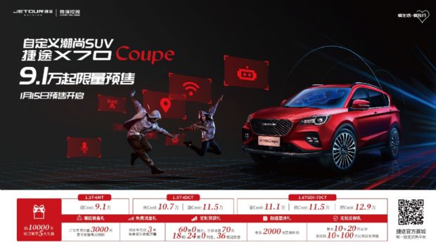 1月15日,可在网上个性化定制外观及内饰套件的奇瑞控股捷途全新时尚车型,捷途X70 Coupe正式开启预售,新车推出了1.5T+6MT/6DCT、1.6T+7DCT三种动力组合共6款车型,预售价区间为9.1万-12.9万元。这让一众对捷途X70coupe种草已久的时尚达人们,终于可以出手“拔草”,一了心愿。 潮酷装备礼:订车尊享价值3000元豪华智能电动侧踏 对于在正式上市前抢先预订的粉丝,奇瑞控股捷途为前10000名抢订者准备了尊享5大礼遇。 免费流量礼:指定车型送3年免费娱乐数据流量 定制贷款礼:60期0首付,日供本息70元,18期/24 期0利息、36 期超低息 超值置换礼:全系2000元置换补贴 无忧质保礼:整车10年/20万公里、发动机10年/100万公里超长质保 捷途X70 Coupe在延续捷途产品“徽城翘楚”设计语言的基础上,全新设计的外观更加时尚酷炫。点阵式进气格栅搭配熏黑式LED大灯以及一体式前保,运动感十足,新车采用双色车身设计,并提供4种车身颜色及8种双色车身组合定制,车身部件更是提供了26种外观套装供选择。 内饰方面,捷途X70 Coupe同样凸显运动运动元素,中控台到门板及座椅均辅以大量色彩线条装饰,搭配D型运动方向盘;12.3英寸液晶仪表、10.1英寸智能大屏、触摸式空调控制提升内饰的科技感和体验感,车联网、手机无线充电、智能云语音互动等智能科技配置极大方便用户用车体验。捷途X70 Coupe的内饰提供了红黑、黄黑、迷彩、全黑等多种色彩搭配的定制化选择。 动力方面,捷途X70 Coupe共推出1.5T+6MT/6DCT、1.6T+7DCT三种动力组合,其中1.6T车型采用奇瑞控股集团自主研发的第三代ACTECO系列1.6TGDI发动机,拥有145kW最大功率和290N·m峰值扭矩。新车还配备了博世第九代ESP、EPB电子手刹、AUTOHOLD自动驻车、胎压监测、防疲劳车道偏离预警系统、盲区监测自动警示功能、智能预警后雷达、360°全景泊车等全方位的主被动安全配置。 深化“旅行+”市场定位,捷途X70 Coupe是奇瑞控股捷途2.0时代的全新力作,深切迎合年轻消费者个性化、智能化需求,尤其是定制化属性更是贴近了消费者的真实用车场景,彰显了奇瑞控股捷途以用户为中心的原则,激起年轻消费者购车热情的同时,也必将引领行业转型,强化行业用户理念。 |