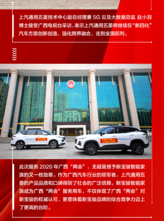 “2019年,我们用汗水浇灌收获,以实干笃定前行。”新年前夕,习近平主席发表了2020年新年贺词,感召全党全国在新的一年继续奋楫向前。“2020年是具有里程碑意义的一年,我们将全面建成小康社会,实现第一个百年奋斗目标。让我们只争朝夕,不负韶华,共同迎接2020年的到来。”习近平主席铿锵的话语、豪迈的宣誓、殷切的关怀,激发了全国人民前行的动力,更点燃了亿万民众奋斗的激情。 万象更新 智能家族为广西“两会”保驾护航 律回春晖渐,万象始更新。1月11日-12日,广西壮族自治区十三届人大三次会议、政协十二届三次会议在广西人民大会堂召开。新宝骏智能家族新宝骏RS-5、RC-6、RS-3、RM-5荣膺2020年广西“两会”服务用车,不仅为与会代表们提供了智能安全的用车服务,亦标志着新宝骏在智能网联领域实现了更高层次的飞跃。 会议期间,新宝骏智能家族在南宁市民族广场展示,在全区所有人大代表、政协代表以及南宁市民面前亮相,受到了众人的高度评价,代表着广西智能制造2025战略的新方向。今年的政府工作报告提出,要打造工业互联网平台,拓展“智能+”,为制造业转型升级赋能。通过聚焦前沿技术,不断为实现工业生产的高质量发展注入强劲动力,从而推动企业向全面国际化发展,这与新宝骏的品牌愿景可谓是不谋而合。 新宝骏打造广西汽车智能制造新名片 此次服务2020年广西“两会”,无疑是授予新宝骏智能家族的又一枚勋章。作为广西汽车行业的领军者,上汽通用五菱不仅有着雄厚的实力,产品品质和口碑得到了社会的广泛信赖。而新宝骏品牌自诞生以来,便肩负着“创造出行新生活”的伟大使命,旗下的智能家族相较于传统汽车,从外观、内饰装备到核心技术都拥有革命性的蜕变,树立起智能网联领域的新标杆,与众多用户站在一起,推动着广西地区乃至时代的发展与变革。 技术在升级,网联系统在迭代,然而新宝骏不曾改变的,就是为用户构建智慧移动出行体验的初心,始终致力于提供多元化的智能出行解决方案。随着5G时代的到来,新宝骏将实现从驾驶者到全员的全域覆盖、从车内到车外的全时在线,真正构建起由封闭到开放的全生态出行“移动智能空间”,由汽车制造商向出行服务商转型,以用户为核心,为用户提供体验式服务,引领汽车产业向跨界融合迈出坚实有力的步伐。 在2020年开局之初,新宝骏智能家族成为广西“两会”服务用车,不仅体现出广西“两会”对新宝骏的权威认可,同时更意味着新宝骏品牌的综合竞争力迈上了更高的台阶。站在全新的起点上,新宝骏品牌将不忘初心,奋楫前行,努力为中国消费者带来多元的移动出行解决方案,构筑面向未来的全场景智慧移动生态圈! |