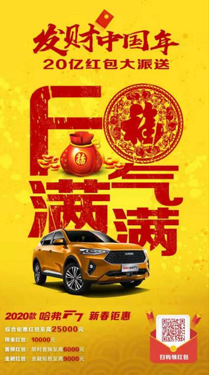 《左转》中记载:自春秋战国以来,中国人便对喜庆、吉利的“谐音梗”极其偏爱,比如说“6”代表“顺”、“8”代表“发”、“F”代表“福”……暗含人们对未来生活的美好愿景。而在西方宗教文化中,也对“7”、“13”等数字迷之热恋,更有Lucky7的说法。 伴随着抢火车票、好友助力、回家拼车等艰辛日常,春节已经悄然临近,而人类一年一次的大迁徙也要开始了。为了让大家无论在回家的路上,还是在“炕头上”感受到满满的爱意,哈弗SUV联动“今日头条”、“抖音”、“火山小视频”、“西瓜视频”等多个阵地,通过“发财中国年”全民新春福利活动为全国人民送“F”气。而作为中国品牌首款“全球车”,哈弗F7更是赶在年前“放大招”,钜惠万元礼包“潮”你而来,助力用户在新的一年里“买福车、开福车、载着幸福过大年”。 开上“福气车”,新春才能福满年 “福气车”一词从何而来?当然是经过海内外市场验证了,在全球消费者的眼里,哈弗F7绝对是心中的“福气车”。刚刚过去的2019年国内市场中,哈弗F7劲销140770辆,助力哈弗SUV在“车市寒冬”中破冰。不仅如此,哈弗F7更在海外市场强势助力哈弗SUV连续6个月销量破千,成为俄罗斯销量增长最快的品牌,真可谓是哈弗的“福星”。而全新升级而来的2020款哈弗F7更是福利爆棚,拥有TA,幸运福气自然来! 如果说能给汽车看面相,那2020款哈弗F7的车型设计绝对是一种福相:由国际大师操刀的太空科技美学设计,绝对是新春街景中最引人注目的存在。搭配繁星式中网、恒星矩阵LED大灯、彗星尾翼行车灯,2020款哈弗F7用最潮流的设计释放满满福气。 这还不够,2020款哈弗F7更能贮藏福气。2725mm的超长轴距拥有充沛的车内乘坐空间,新春全家串门丝毫不拥挤,而490L的后备厢容积更能塞下满满的“年货”和新春好礼。更值得一提的是,在放倒后排座椅后,2020款哈弗F7的最大纵深能达到1800mm,相当于一个双人床的宽度! 不仅如此,2020款哈弗F7还让“福气”一路相伴。作为“AI智能网联SUV”,凭借升级到V2平台的智能网联系统,2020款哈弗F7能够实现智能语音、智能娱乐、智能出行、远程控制等30多项功能,一首“福气拱拱来”传遍整个车厢。而全新L2级的自动驾驶系统,更能让用户感受到了智能科技所带来的便捷、安全,其中的TJA交通拥堵辅助系统、半自动泊车功能、ACC自适应巡航、车道居中保持、车道偏离预警等功能为用户新春出行保驾护航。 想起底2020款哈弗F7追逐“福运”的勇气?那必然是背后2.0GDIT+7DCT黄金十佳发动机所提供的强劲动力。2020款哈弗F7所搭载的发动机和变速箱,分别荣获了“中国心”十佳发动机称号和“世界十佳变速箱”的称号,这是一份经过“实锤验证”过的“福运”! 别等敬业福了,2020款哈弗F7带你瓜分20亿红包 新春佳节,不来点“干货”怎么行?2020款哈弗F7除了为用户带来了满满福气,更准备了新春钜惠购车礼包和20亿红包,一边轻松将2020款哈弗F7装入购物车,一边在手机上感受新春“仪式感”的新玩法。 到底有多优惠?看完不淡定了 * 春节前购车,最高优惠25000元,助你一步实现购车梦! * 8000元的现金让利,真实返现,新年开始就让你数钱到手软! * 另外6000的置换补贴以及9000的贷款利息,提前用车不犯愁! 而在娱乐方面,2020款哈弗F7还有终身的免费基础流量以及3年的娱乐流量赠送,这对于“无网不欢”的年轻人来说简直不要太刺激。此外,家庭新增购车还有另外的4000元现金补贴,在订车之后,还可获赠4000元的新车保险以及精美礼品,享受真正的折上折。 抢红包的正确姿势? 扫福字、送福卡……一顿操作猛如虎,再看红包少的可怜。听说你已经对往年某某企业的新春抢红包活动失去信心了?哈弗SUV表示不背这个锅!此次的“发财中国年”全民新春福利活动不仅福利满满,更是玩法多样。用户可以通过红包大会活动、集卡活动、红包雨活动、抖音KOL红包活动享受哈弗SUV的20亿红包大派送,丰厚红包现今和购车礼金等你来拿!快上车,还不快和2020款哈弗F7共同体会一次真正的发财中国年。 中国人将“F”寓意为“福”,西方人又将“7”视为幸运数字。2020年,哈弗F7是送给全世界用户最好的“福利”,无论是海内外汽车市场的销量验证,还是满怀诚意的钜惠购车和红包好礼,2020款哈弗F7始终都是“F力满满”不停歇。现在,哈弗亿元红包已备好,快快领取你的“福袋”奖励呀! |