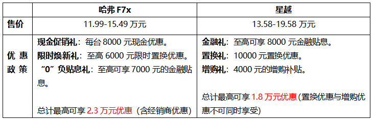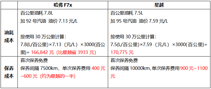 自2019年起,轿跑SUV开始大行其道,越来越多的年轻人开始注意到这一全新的物种。而这种跨界车型带给年轻人的,不仅是“COUPE+SUV”的前卫设计,更是一车抵三车的全能实力。尤其是中国轿跑SUV的集中涌现,更是让年轻人能够轻松入手高品质轿跑SUV,尽情彰显个性风采。 时值新年,许多年轻人都打算入手一款新车。对于年轻人而言,最看重的莫过于成本、颜值与性能。而对于车企而言,如何在控制成本的前提下,使设计和性能实现最大化的实力发挥,也是考量功力与技术底蕴的难点所在。哈弗F7x和星越都是中国轿跑SUV中的代表车型,看起来各有优势,不免让年轻人在选车时陷入纠结状态。那么,这两款中国轿跑SUV,究竟谁能更胜一筹,更值得年轻人入手?下面将从成本、颜值及性能方面,对哈弗F7x和星越两款车型进行综合对比,通过多轮PK,为大家揭晓答案。 衡量成本面面俱到 究竟谁才是走心之选? 对于预算有限的年轻人而言,无论是价格还是出行成本,都会给生活带来不小的压力。然而,从价格、优惠政策、油耗、维修保养等,需要考虑的问题面面俱到,如果不经过一番慎重对比,年轻消费者很容易在选车方面吃亏。下面,将对哈弗F7x和星越两款车型进行价格和用车成本的全面对比,希望对年轻消费者的购车选择有所帮助。 在车型售价方面,哈弗F7x的售价为11.99-15.49万元,而吉利星越的售价则相对更高一些,在13.58-19.58万元区间。同级别版本,吉利星越要比哈弗F7x高2-4万元,对于年轻消费者而言,算是不小的经济压力。相比之下,哈弗F7x在车型定价方面更加亲民、合理。除了售价,优惠政策种类繁多,也让年轻消费者陷入两难的选择。近期,哈弗F7x推出新年购车礼,为年轻消费者带来三重好礼,最高优惠达2.3万元。在8000元现金促销的基础上,还可享受最高6000元的置换优惠和7000元的金融贴息。而在新年期间,购买星越则可享受8000元金融贴息、10000元置换优惠和4000元的增购补贴,需要注意的是置换优惠与增购补贴不能同时享受,用户最高可享受优惠1.8万元。对于年轻消费者而言,很多人都是首次购车,那么现金优惠和金融贴息才是最实在的让利,哈弗F7x现金优惠加金融优惠共15000元的优惠,而星越只有8000元的金融贴息,哈弗F7x比星越多出7000元的优惠。对比之下,在优惠政策方面,无论首次购车的消费者,还是选择置换购车的消费者,显然购买哈弗F7x更划算。 除了价格之外,后续用车成本也同样需要斟酌对比。据官方油耗数据,哈弗F7x百公里油耗7.8L,星越百公里油耗7.5L,乍看之下,选择星越似乎出行成本略低一些。但需要注意的是,哈弗F7x可以加92号汽油,油价为每升7.13元,而星越则必须加95号汽油,油价为每升7.59元。每辆车的使用寿命按30万公里计算,那么选择哈弗F7x,燃油成本经过计算为166,842元,而选择星越的燃油成本为170,775元,相比之下,选择哈弗F7x能省下3933元的油耗成本。再说到维修保养,哈弗F7x首次保养免费,保养间隔为7500km,保养费用为400元~600元,而星越也是首次保养免费,保养间隔为10000km,保养费用为900元-1100元。对比来看,星越保养间隔仅比哈弗F7x多了三分之一的距离,但是单次保养成本却几乎是哈弗F7x的两倍,可见,购买哈弗F7x在维修保养方面花费更低。 经过多方对比,无论价格、优惠政策、燃油成本还是维修保养成本上来看,选择哈弗F7x显然更划算,不仅售价和优惠政策上更具诚意,而且更低的后续用车成本,也让年轻人免除后顾之忧,减少了很多经济压力。 颜值与内涵兼具 谁才能俘获年轻人的心? 轿跑SUV的造型最能反映出车企的设计功力。如何将COUPE+SUV的造型融合得恰到好处,同时又不牺牲内部空间和乘坐舒适性,需要下很多功夫。毕竟在这个“看脸”的时代,颜值不出彩,那么就无法第一眼打动年轻人,也无法让人去读懂深刻的内涵。接下来,就来对比一下哈弗F7x和星越在颜值和内部空间上的表现。 外观上,哈弗F7x采用了i-Home Platform全球化设计语言,并与太空设计元素完美融合,“激进深空”前脸、“繁星式”中网与“北极星”雾灯交相辉映,极具辨识度;以“天际线穹顶”为设计灵感的溜背造型,行云流水般一气呵成,别具未来感;车身侧面的俯冲式腰线,凌厉而富有力量,表现出一种蓄势而发的运动姿态。同时,哈弗F7x实现了空气动力学的完美应用,整车风阻系数低至0.34Cd值,媲美豪华品牌。而星越外观造型流畅优美,整车设计偏向简洁风格。不过较短的车身使得A柱之后的溜背造型显得有些局促,影响了整车的美感。其前脸采用了吉利家族传统的“V”字型设计,看起来张力不够,稍显内敛,但车头下部两侧的进气口与扰流板的造型恰到好处,搭配侧面凌厉的线条运动气息强烈。就造型设计来看,仁者见仁,智者见智,不过相对而言,星越在设计风格上更加内敛沉稳,而哈弗F7x更加个性活力。 说到内部空间,许多人都认为轿跑SUV由于溜背造型设计,必然会牺牲一定的后排空间。不过,两款车在后排上方都做了凹陷设计,加大了头部空间。再来看尺寸对比,星越仅在车身宽度方面略占优势,其他表现相比之下都要逊色一筹,尤其轴距更是比哈弗F7x少了足有25mm。这就意味着哈弗F7x的乘坐空间更大,尤其是后排乘客的腿部空间明显比星越更加宽敞,而且后排空间的中央地台也比星越更加平坦。由此可以看出,在内部空间设计以及人性化的细节处理上,哈弗F7x更胜一筹。 综合来看,哈弗F7x和吉利星越在外