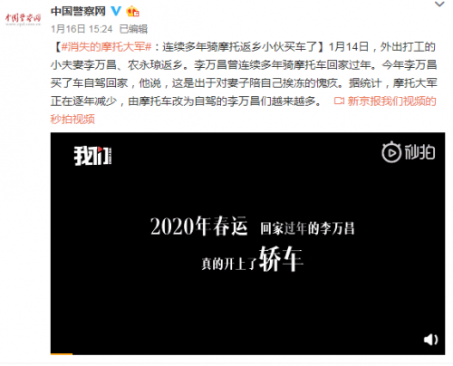 春节是国人心中最富有意义的节日,每逢新岁,碰杯声、鞭炮声、搓麻声等等汇聚成一年最具幸福感的时光。而每至年前,会有数十万的摩托大军成队返乡,规模宏大,引人注目。凡有见者,摩托大军的朴素辛劳也一览无余,令人心疼不已。其实大家对这样的新闻和图片并不陌生,而日前中国警察网等众多官微转发的一则视频被广泛传播。该视频来源于新京报我们视频,题目是“#消失的摩托大军#连续多年骑摩返乡小伙买车了”,该视频一经发布,在网络上引起大范围转载和评论,播放量迅速超过600万。 (图片来源于网络) 视频中的主人公叫李万昌,多年的时间里,他都是骑着摩托车带妻子回家过年。至少2天的骑行里,夫妻两人一路风餐露宿。尽管妻子未曾抱怨过,但看着妻子跟自己受苦,李万昌深感愧疚。而去年,妻子因为没能买到回云南老家的票眼眶湿润,这让李万昌深受触动:这么多年过去了,孩子都5岁了,李万昌却没有带着妻小到岳父岳母家过过一个真正意义上的年。李万昌下定决心今年带妻子和孩子回云南过年。然而,摩托车是带不了一家人的。 (图片来源于网络) 积攒了多年存款的李万昌,有了一定的经济条件,2019年通过多番谨慎对比,他选购了一辆哈弗F7,这款SUV能够轻松应对南方复杂的起伏地形,还具有很高的舒适性和科技配置,看着妻子入座车内的幸福笑容,李万昌开心不已。 促使李万昌买车的理由或许不止一个,但最主要的原因,是出自李万昌对妻子深深的爱,记者问李万昌是不是觉得娶到她很幸运,李万昌直言:这辈子能娶到她,赚大发了。开上哈弗F7的李万昌,只想妻子过得开心舒心。 (图片来源于网络) 让网友感动的,除了李万昌夫妇深厚的感情,还有李万昌努力向上的奋斗精神。多年前李万昌最开始的时候对妻子说:现在没有的,不代表以后没有。而今年李万昌对妻子说:他还在努力,妻子要为他加油。话语间透露着真诚和信心,以前放过的豪言,或许时至今日依然没有实现,但他仍在努力。李万昌曾说要开上豪车,但记者表示现在开上哈弗F7已经很好了,真的很好。 或许李万昌不知道,哈弗SUV曾经在国际知名品牌评测机构Brand Finance出具的榜单中,哈弗品牌力超越吉普、路虎位居第一,品牌等级AA+。而哈弗F7正是哈弗近年推出的全新旗舰车型,拥有智能网联、L2级别自动驾驶、半自动泊车、高清360影像等诸多科技配置。而哈弗SUV作为连续10年获得国内SUV年度销量第一的品牌,在产品力上扎实可靠,产品卓越。哈弗F7作为一款全球车甚至开进了克里姆林宫,得到中俄元首的签名鼓励,成为海外炽手可热的明星车型。当然,以上这些李万昌或许都知道,毕竟辛苦攒下的钱,必然要对爱车追根溯源,方方面面考察清楚。 视频中,李万昌还保留着骑行时的习惯,开车的时候依然用着手机里的高德导航,尽管 2020款哈弗F7的内置高德导航堪比智能手机。在生活里,我们不得不承认,很多人也都保留着老习惯,放着车载大屏不用,一定要空调出风口夹一个手机支架。也许正是基于一份不能轻易改变的心意,才维系了多年不变的深厚感情。 记者连续多年追踪了李万昌回家过年的事迹,见证了他从一辆摩托车到一辆哈弗F7,从一摩双人到一车多人。眼看着摩托大军的数量逐渐减少,而这也正代表着他们的生活逐渐好了起来,相信所有人都会为“摩托大军”感到欣慰。 (图片来源于网络) 过年,或许是“摩托大军”心中最神圣的仪式,在这个仪式里,他们会探望久久未见的老父老母,会爱抚未能照看读书的儿子女儿,会走亲访友感谢他们一年里的关照帮扶,会拜祭家族逝者祈福全家顺达安康。所以,无论如何都要回家过年。 今年,依然有“摩托大军”骑行归乡,他们并没有彻底消失。他们不是很懂网络,不会网上购票,不是很有文化,不会咬文嚼字。他们穿着朴素但很厚实的衣服,在年前汇聚成数十万的摩托大军,分路从南向北,或者由北向南,顶着寒风刺骨,奔波数日,只是为了回家过年。 他们之所以骑行回家,或许是因为没能买到票,或许是因为家乡交通不便,或许是为了供子女读书节衣缩食,不管为了什么,如果遇到了,希望大家都能看到他们可爱的一面,报以微笑。 |