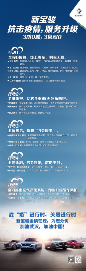 疫情当前,众志成城。 新冠病毒引起的疫情牵动着每个人的心,众多企业、组织与个人纷纷支援抗疫前线,以己之力,共渡难关。上汽通用五菱作为中国汽车行业的头部企业,责无旁贷,启动医疗物资转产、捐赠及用户安全响应机制。 车企”兼职“产口罩,大企业担当支持抗疫 上汽通用五菱作为有社会责任感的一家企业,一直在为疫情防控提供力所能及的帮助。1月31日,上汽通用五菱得到广西自治区党委政府对疫情防控的相关要求,公司紧急从印尼、印度采购运返2万只医用防护口罩,其中包含霍尼韦尔N95口罩10,000个、医用外科口罩10,000个,供柳州市抗击新型冠状病毒肺炎疫情一线使用。 结合汽车“大行业、大工业”的相关优势,上汽通用五菱提出调动供应商资源生产口罩的计划,得到广西区、柳州市、来宾市政府的大力支持。根据项目建设计划,由区政府项目资金扶持,广西建工集团负责将广西德福特集团的原有生产车间改建为2000m2无尘车间,于本月内(2020年2月)建成投入使用,共设置12条口罩生产线。按照生产设备、人工等资源的配置情况,口罩的日生产量预计可以达到170万个。目前,已经对生产线进行改造并启动生产准备工作。无尘车间的建设工作正在同步开展,专业生产设备计划将于26日运抵,可达到医用级别口罩的生产标准。 此次联合生产口罩的项目,在各方的积极推动及紧密配合下,从提出想法到进入具体的实施阶段仅花费不到5天的时间,不仅是汽车产业的一次创新举措,更是政企高效联动、一切以市民的健康安全为先的最佳诠释。 在上汽通用五菱全力支援抗击新冠病毒疫情的同时,旗下品牌新宝骏在疫情面前积极应对,系列措施保障用户在疫情期间的购车、用车安全,推出“共抗疫情、服务升级”行动,在全程线上无接触购车、线下进店服务、售后保障以及金融政策等方面,落实“3防0触,3免双0”。面对疫情,新宝骏一直在行动。 新宝骏守护用户,升级服务共抗疫情 一、全程无接触:线上看车,购车无忧 新宝骏通过对经销商进行专业指导培训,发动全国经销商门店在抖音等大众平台直播带货,保证用户的购车需求得到充分满足。同时,新宝骏开通VR/AR等多种线上智能展厅看车渠道,让用户足不出户即可直播全方位赏车。用户可通过BAOJUN APP以及京东、苏宁、天猫新宝骏线上商城等多种线上下订渠道,享受线上预订的多重福利与服务。 致敬奔走在抗击病毒一线人员的最好方式,就是做好自我防护,切断病毒传播途径。疫情期间,新宝骏将作为用户看购车的全程管家,为全国用户免费提供上门试驾、上门交车、二手车上门置换等服务,让用户购车无忧。 二、全维防护:店内360度无死角防护 对于有进店选车需求的客户,在提供贴心服务的同时,新宝骏还将郑重承诺,全力保障每位用户的健康出行与安全防护。新宝骏在所有经销商门店严密设置各环节的全维防护措施,严格做到3大防护: l洽谈防护(单独洽淡空间) l试驾防护(试驾车辆试驾车辆每次体验前后,都会进行彻底消毒) l用品防护(确保门店全部区域每日消毒清洁,工作人员符合健康标准且全程佩戴口罩) 同时,销售人员将向用户公示所有车内外消毒情况及车内空气循环系统工作和消毒,为用户最大程度减少病毒感染风险。 三、全情售后:3免服务*24小时陪伴 为了应对疫情防控期间用户不便出门状况,新宝骏为全面解决用户用车后顾之忧,特推出售后“3免”服务:免费升级空气净化滤芯、免费提供爱车消毒服务和免费上门续保,上门取送车并进行消毒。与此同时,新宝骏开通24小时在线咨询服务,线上预约售后服务,用户可以随时随地咨询售后问题,新宝骏第一时间为用户提供解决方案。 四、全速金额:双0政策,信用支付 疫情特殊时期,新宝骏齐心协力帮助购车用户共渡金融难关,新宝骏以超低月供、万元贴息开启全速金融通道,推出0首付政策解决用户紧急用车问题,0利息政策保证用户购车无压力。 五、近期,新宝骏将对车内空气净化系统进行全面升级,为用户提供更加干净的驾乘环境。 科学防控疫情,新宝骏与用户同在 一、为用户推送科学防疫知识,实现全民防疫 新宝骏时刻关注最新疫情动态,收集权威疫情防护知识,在自有平台进行推送。通过BAOJUN APP、新宝骏手机车联网及官方媒体平台等渠道,向用户推送科学防疫知识,让更多的人了解疫情,科学防疫。 二、为全国经销商提供防疫及产品专业指导,保障购车安全,满足购车需求 新宝骏通过对全国经销商进行科学防护及产品专业指导,保证用户的购车安全及需求得到充分满足。 面对疫情,新宝骏秉持以用户为本的理念,通过多种科学防控与暖心服务,在保证用户与工作人员安全的前提下,为更多用户提供人性化的安心购车服务。齐心协力,共克时难,为抗击疫情贡献绵薄之力,打赢新冠病毒疫情阻击战。 |