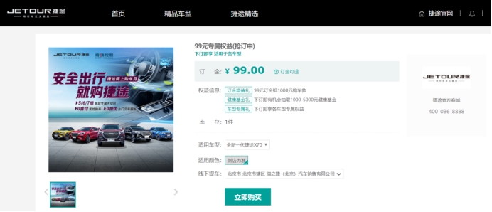 近一段时间,全国人民都在为抗击疫情做出自己的努力,不出门或者少出门就是一种贡献。同时公交、出租、高铁、飞机等公共交通也都停运或者减少了班次,从客观上还是给大家的必要出行带来了相当的困难。但遇到紧急事件和采购生活必须物资,出门依然是避免不了的。如何安全便捷的出门?综合比较来看,私家车出行成了公认的最便捷也是最安全的一种方式。 有车的家庭自然不用困扰,但准备购车或者急需购车的人们,如何在当下更安全更便捷的买到中意的车,成了实实在在的“刚需”。为了有效解决用户的痛点,想客户所想急客户所急,奇瑞控股捷途迅速推出了“捷途网上购车月”活动,满足大家足不出户,就能看车选车购车的需求,同时用整车消毒、送车上门的措施打通了用户难购车的最后节点,以贴心服务温暖了大家因疫情而纠结的心。 具体措施如下: 1、 用户可登录捷途官网、捷途智慧展厅小程序、捷途官方微信公众号等平台,就能实现线上全景看车、线上选车购车等。 2、 任何有关车辆及购车的问题均有在线客服全程一对一专项解答,给客户提供专业、详细、及时的参考。 3、 选定车辆后,网上直接提交订金和生成订单,客户选择所在地,当地经销商就会将车辆全面消毒后,由专人送车上门。 此次,捷途推出的网上购车活动,不仅大大提升了购车的效率和体验,同时也有效的避免了用户与人群的接触,从而在疫情特殊时期,有效的避免被感染的风险,可谓即便捷又安全。 捷途官网网上商城 同时,为了进一步促动线上购车,捷途还推出了网上购车五大豪礼: 订金增值礼:99元订金抵1000元购车款 健康基金礼:下单即有机会抽取1000-5000元健康基金 无忧金融礼:60期0首付/日供本息50元起/24期0利息/36期超低息 原值置换礼:旧车0折旧,原价换新车 超长质保礼:整车10年/20万公里、发动机10年/100万公里超长质保 与此同时,对于已经购买捷途的用户,为了解决用户出行不便无法到店保养的难题,此次捷途同样推出了五大暖心用车服务。 1、体贴呵护、温馨同行:经销商每天定时消毒,严格按照国家标准管理员工,确保健康上岗。 2、安心保养、放心同行:针对疫情影响无法按时进店保养的客户,均延长三个月保养周期,不受时间里程影响。 3、在线服务、贴心同行:多对一专属微信服务群,专业团队(技术总监、客户经理、服务经理)为您提供车辆长时间停驶的用车指导。 4、救援保障、爱心同行:提供24小时救援,同时为客户提供一次性医用口罩、消毒液等物资。 5、专属服务、暖心同行:疫情期间至结束后客户可享受专属四免服务(免费车内消毒除菌、免费取送车、免费检测、免费洗车) 疫情无情,捷途有情。在疫情爆发后,捷途积极响应用户需求,快速的推出了网上购车、客户关怀等政策。便捷、安全的购车体验、送车上门消毒清洗的贴心服务、超值的五大购车豪礼以及老客户五大关怀,无不体现了捷途以用户为中心,为用户创造愉悦体验的诚意。同时,网上购车、线上商城等形式的推广应用也开启了线上购车的新创举,极大的推动了汽车销售渠道及模式的转型升级。 |