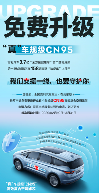 (快讯)近日,吉利汽车“全方位健康汽车专项项目组”首个研发成果——真车规级“CN95”高效复合空调滤芯(以下简称“车规级CN95空滤”),获得了由国内权威机构——中国汽车技术研究中心(以下简称中汽研)华诚认证中心颁发的“CATARC CN95”认证标志,成为国内首家(001号认证)获中汽研官方最高级别认证的车载空调滤芯产品。这也让吉利汽车成为了首家获得中汽研官方认证、首家成功投产、首家为全国在售车型的车主免费更换、车规级CN95空滤的“三首”车企,充分体现了吉利汽车始终把用户的生命安全和身体健康放在首位,在疫情当下积极践行企业社会责任的担当。 中汽研华诚认证中心是国内目前唯一具有“车规级CN95空滤”认证资格的权威机构,也是国家认监委指定的强制性产品认证机构。其中,C代表“Car”,N95代表达到了医用N95型口罩级过滤效果,“CATARC CN95”认证也是目前汽车空调滤清器的最高等级认证。该项目除考核车辆对外部空气的过滤效果外,还将对车内空气循环净化能力进行测试,从更加全面的角度,评价车辆的车内空气质量水平和优化能力,帮助消费者更好的选车购车。 根据中汽研华诚认证中心发布的认证标准,“车规级CN95空滤”首先要满足汽车行业空调系统过滤器标准的粉尘过滤要求,其次在288m3/h风量下对0.3um颗粒物过滤效率达到95%以上,最后还要对肺结核、流感嗜血杆菌、酿脓链球菌等的杀菌率达到99.99%。也就是说,能够满足这三个要求的车载空调滤芯才能被称为“车规级CN95空滤”。 中汽研华诚中心科学专业测评的结果显示,吉利投产的国内首个真“车规级CN95空滤”采用了活性炭、高效无纺布、多层复合介质等孔径更小的新型滤芯材料,可以防霉除异味,除烟雾、粉尘、花粉等易致敏物质,还能实现对直径0.3?m的颗粒过滤效率达到95%以上;对新冠病毒吸附的通常大于0.74?m飞沫的过滤效率能达到98%;并且能够有效过滤掉空气中的PM2.5颗粒,拦截效率达99.9%以上,达到了N95型口罩级别的过滤效果,完全符合“CATARC CN95”的认证标准。 据吉利汽车相关负责人介绍,首批“车规级CN95空滤”已装配到吉利捐赠给武汉、晋中、贵州、台州等地驰援疫情防控的158辆嘉际上,为抗疫工作人员的出行提供更安全的防护。此外,吉利汽车还针对新老用户推出了免费更换“车规级CN95空滤”的专项升级活动。吉利品牌、领克品牌与几何品牌的所有在售车型的车主,均可在3月31日前联系当地服务站预约申请,到站免费更换。吉利汽车正加快“车规级CN95空滤”的批量生产,力争让广大用户能够第一时间得到“车规级CN95空滤”的守护。 值得一提的是,除了“车规级CN95空滤”,吉利汽车还将在采用H11等级HEPA材料的基础上,开发活性炭、抗菌、抗过敏三种精品车规级高效空调滤芯用于后装,便于用户多种选择。 钟南山院士近日在采访中也指出:开车出行,无疑能极大降低新冠肺炎感染的几率。目前全国各地复工人流迎来高峰期,正处于疫情的防控的关键期,出行时选择一辆配备多重健康防护系统的车型尤为重要。吉利汽车不仅率先试制量产了“车规级CN95空滤”,并免费为数百万名吉利车主更换,此举在开创了业界先河的同时,也彰显了吉利作为中国汽车品牌领军者的责任与担当。 |