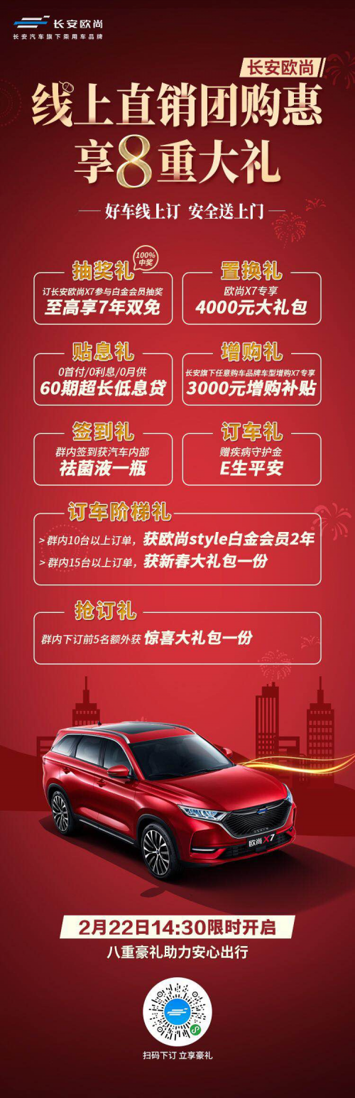 “少接触,共防疫“目标下,许多人都被迫”困“在家中,大批4S店也还没有正式开放,那么想要尽快拥有一辆新车的愿望只能搁置了?长安欧尚汽车在2月22日举办“好车线上订,安全送上门——长安欧尚线上直销团购惠”活动,让客户足不出户就能以优惠价格买到心仪爱车,购长安欧尚X7更有机会享最高7年白金会员“双免”权益,特殊时期购车愿望也不落空。 长安欧尚汽车始终坚持客户为主导,特殊时期,调动背靠长安汽车的雄厚资源、资金和技术优势等,加大投入投资力度,加快生产,硬核保障客户急切私家车出行需求。同时,本次线上团购惠的形式,大度让利,让客户外界零接触购车,更加安全安心,彰显企业实力和人性温暖。 在家购长安欧尚X7 最高抢7年“双免”用车费 客户参与“好车线上订,安全送上门——长安欧尚线上直销团购惠”活动,可获抽奖礼,也就是通过欧尚style订购X7,可参与白金会员抽奖,100%中奖,最高可享7年“欧尚style白金会员权益”政策,即终身免费基础保养、免费质保等8项权益。活动期间,客户以任意品牌车型置换X7可获得4000元大礼包,而凡已购买长安集团旗下任一品牌车型的客户,增购长安欧尚 X7,也可享受3000元增购补贴。除此之外,活动期间购车通过金融政策购车,享受0首付或0利息或0月供,更有60期超长低息贷,买到就是赚到。 在此期间购车不仅实惠,而且也有外界零接触的安全保障。欧尚Style 7*24小时在线服务,节假日无休,为客户提供选、购、用、修、换车等全时服务,消费安全更放心。 具体为:在线全景看车服务,车辆介绍、产品咨询和政策信息均可线上全息查询,线上线下保证一致;上门试驾服务,在欧尚Style一键预约试驾车辆和时间,专属顾问服务,全车消毒后24小时内上门提供试驾;在线订购服务,厂家直联在线订车,所有定金直接汇入厂家账户,购车手续和车辆上户均可代为办理;在线用车服务,足不出户,亦可实现违章查询、保险询价、年审办理、紧急救援等用车服务;上门维修、保养服务,通过欧尚Style或者电话预约维保服务,即可享受上门检测、保养维修。 连续月销破万 长安欧尚X7当红实力护佑安全出行 长安欧尚X7 2020年1月销量13007台,连续两月销量破万,疫情之下销量逆势上扬,更见产品硬核实力。值得一提的是,长安欧尚汽车斥资1000万,加速研发量产——达到N95级空气防护效果的IAPS智能活性滤净系统,自3月10日起,云标系车型欧尚style APP认证车主全面免费升级,将硬核保障长安欧尚X7客户的安全出行环境。 长安欧尚X7凭借超越同级产品的当红实力,持续不下的高关注度,给人留下“中国首个登陆太空的SUV”、“汽车界的小米”、“骨子里的技术男”等夸赞性评价。新车大美外观在全球知名专家的评鉴下,获得国际CMF设计奖,出场即惊艳。座舱采用360°软包呵护,采用全包覆超纤维太空皮质座椅,长途驾驶不易疲劳。拥有比肩合资的核心三大件,其搭载的长安汽车蓝鲸1.5TGDI发动机,荣膺“中国心”十佳发动机,265N.m低速峰值扭矩,爆发力出色,起步、加速、爬坡都得心应手。还有达到15万级车辆的配置等,无论是舒适度、实用性整体都超越客户的期待。 即将搭载于长安欧尚汽车云标系车型及长安欧尚X7的IAPS智能活性滤净系统,是当前世界领先性中国制造科技产品的代表,严格符合《GB2626-2006呼吸防护用品自吸过滤式防颗粒物呼吸器》标准,其PM2.5高效过滤器,达到N95过滤标准,医疗级过滤装置能够有效阻隔病毒传播依附的飞沫、粉尘;领先的毒霸技术是研发工程师不断攻克难题,反复试验,确保每一个环节安全后的科技结晶。搭载长安欧尚汽车IAPS智能活性滤净系统的车辆,相当于给车辆戴了一个N95口罩,更加安全。 长安欧尚汽车全面复工前提下,快马加鞭加速客户订单生产,不惜成本研发量产N95级空气防护系统,同时推出实惠和安全团购惠活动,这一切都是为疫情期间客户安全和实际利益考虑,与客户共同克服艰难时光,更显企业担当,同时让客户感到时时刻刻就在身边的人性温暖,买长安欧尚汽车的产品不仅是得到了一辆车,更是得到更多的关爱,有需求的消费者看准了就要趁此好时机赶紧下手! |
