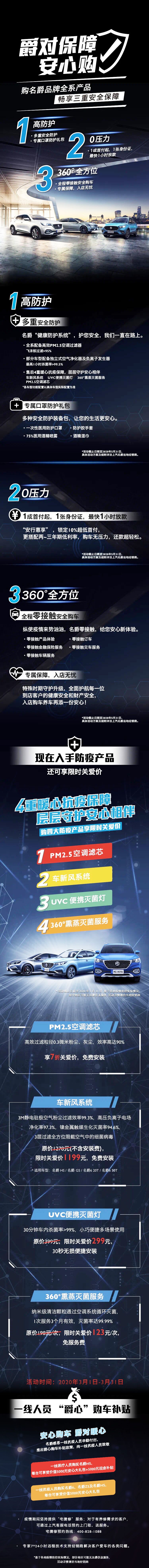 哪有什么岁月静好,不过是有人替你负重前行! 致敬一线抗疫英雄,名爵推出最高价值10000元的抗疫人员购车补贴,为最美逆行者带来关心和温暖。 关爱每一位消费者,名爵还有高防护装备、0压力购车、0接触服务等暖心抗疫保障,多重爱心福利已经开启。 没有一个春天不会到来,3月,我们向着希望出发。[加油] |