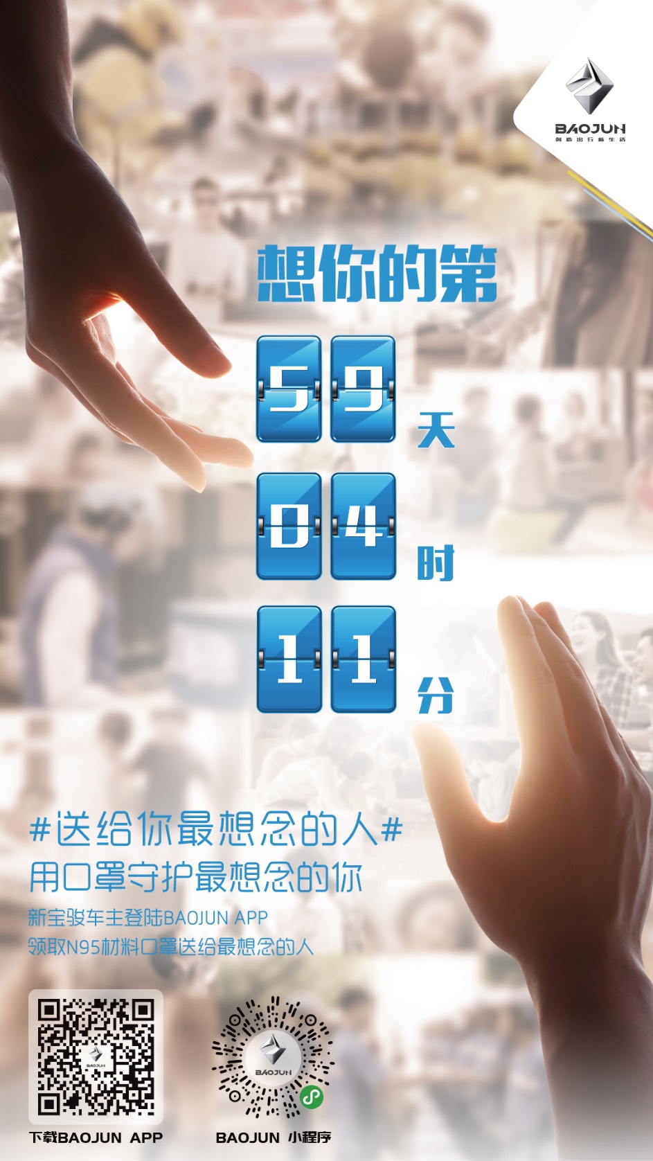 别离太久,思念更深,阔别多日的亲友,唯有微信、电话传递相思。春日渐浓,思念愈涨,新宝骏感怀大家这份满满的情谊,现即推出为车主、粉丝提供传递思念,传递关怀的服务,为那个你最想念的TA,送上新宝骏的口罩与关怀。 新宝骏推出春日用户关怀行动,通过为你最想念的人赠送口罩,为你传达思念,送上关怀。新宝骏借助上汽通用五菱已有生产线,自产N95材料口罩,近日已经在BAOJUN APP上线。新宝骏车主可以登录BAOJUN APP,为你最想念的人写下一句祝福的话,生成专属于你的海报并分享至好友,TA收到后点击选择经销商即可前往新宝骏门店领取新宝骏送出的10个N95材料的口罩,为你最想念的TA送上爱与关怀。 如今,大规模复工复产在即,口罩等防疫物资依然紧俏,如果短时间还不能见到你最想念的人,不防先通过新宝骏送给TA专属的N95材料口罩,隔空传爱,思念不等待。 抗“疫”的路上,新宝骏始终守护在您身边,多日思念,口罩相伴,新宝骏懂你,更为你“罩”顾最想念的人。迎接春天的日子里,让思念不再遥远。情谊长相存,相逢终有时。 |