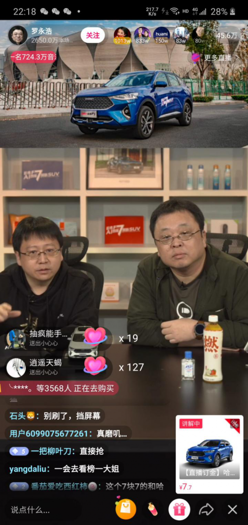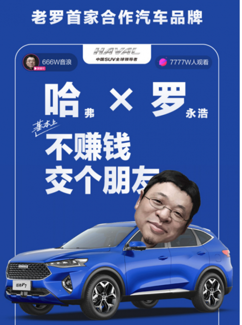 “有惊无险,重拾自我”,用来形容4月10日老罗的第二轮直播卖货很合适:找回了昔日从容风格的罗永浩,到底是hold住了全场,实现直播累计超1150万人观看,这让仅2次涉足直播带货的老罗再次成为舆论焦点。 但是热闹归热闹,在比较两次直播秀之后,不难发现第二轮最大的亮点来自于老罗首次“出圈”带货汽车——哈弗F系的当红旗舰,全球车哈弗F7。这款在国内累计销量达17万台的哈弗新生代旗舰,同时还是3月俄罗斯市场上的中国SUV销量王者。 这种普通直播间无法容纳实物、价格也高达十几万的产品,能在抖音直播可谓首开先河。更难能可贵的是,在带货"全球车"哈弗F7的时候,现场明显产生了奇妙的"化学反应",不仅交出12台半价哈弗F7秒空、7.7元代金券订单量超1.2万的亮眼成绩单,还有一波又一波的金句输出,全程高能,网友们直呼过瘾! 线上流量的红利到底有多重要?在这次疫情到来之后,很多行业开始醒悟过来:当线下通路一旦阻塞,线上可否开启新途?种种迹象表明,哈弗SUV在新零售模式的探索上渐入佳境,已经迎来线上社交型营销的裂变期, 罗永浩直播“联姻”哈弗,两者何以擦出火花 虽说“彪悍的人生不需要解释”,但老罗为什么先卖哈弗,可能需要给大多数人一个“解释”。 细究起来,罗永浩真正有深入认知和经验举荐优势的并不多。结合其锤子手机的职业经历,数码科技产品是第一选择。于是乎,在看待老罗在为何要把“中年男人的第一次”交给哈弗的原因,更多的时候应将其与之前“以工匠精神打造手机”的视角来比较两者之前的交集。当老罗以一个前制造业从业者的身份来谈论哈弗F7时,他作为带货人和推荐人的身份竟是如此契合。 制造业走出国门,几乎是所有品牌创始人的梦想。作为中国汽车出海成功的最新代表作,哈弗F7恰恰是老罗心中那颗“柠檬”,真正的多国研发、海外生产、全球销售,甚至获得中俄两国元首的赞誉和签名。这样的身份,罗永浩直言“确实非常了不起”,也让不少死忠锤粉们都想起了,老罗曾经在发布会上说过的一句话"锤子科技的目标将是远方的海"。 此外,造手机时有着“工匠精神”,对于工业设计有着天生“偏执狂”倾向的老罗集极其欣赏哈弗F7的美学设计和科技投入,对于这台“漂亮得不像实力派”的哈弗F7给出了他平实但说服力十足的评价:“看着就来精神”。虽然他也坦承“偏执”需要厂商加倍的付出,感叹“我造手机时也想过度投入,但是.....” 当然,老罗认可哈弗F7之所以也是一件“数码科技产品”的原因,在于其智能化功能。尤其是语音理解,是哈弗F7智能化极为突出的强项,老罗直播现场飙金句:“最听得懂人话的智能语音系统“,意思就是即使以方言和不太精准的命令,都足以控制哈弗F7的空调、天窗/车窗、导航、车载系统等等。直播时老罗那句“语音打开天窗,不止看到了星光,还看到了姑娘发懵的表情。”可以说相当传神了。 对于哈弗F7上的“黑科技”,老罗在直播中推荐了一个哈弗F7“用过后就回不去的地方”:真正意义上的L2级别自动驾驶——你可以让车辆自动地可在0-3s内自动跟随前方车辆,更少控制方向盘控制,避免频繁拉放手刹、踩油门。而哈弗F7自行探索停车位以及停驻的“半自动泊车”功能,让老罗发出这绝对适合“停车不太行的人”的点评金句。 哈弗这次有多赢?流量为王,上场就成功一大半 直播卖货,本质上还是流量变现,流量大,几乎可以解决绝大部分问题。尤其像罗永浩这样自带流量的主播,进入到这个领域,有着先天优势,当天的直播卖货,即使哈弗F7压轴登场直播间流量绝大部分时刻都高居50万人以上,要知道这可是单价高达14万,而非此前“1分钱抢购橙子”的环节。 由于在中青年群体中拥有大量忠实拥趸、长期出现在热搜的罗永浩明显有着显着优势。相比于直播带货的直接销量,与老罗的合作带来的线上流量与品牌曝光很可能是哈弗更关注的部分。换言之,自带流量的罗永浩本身成为了一个海量的曝光分发平台,无论线上订单量如何,在品牌整体曝光度上的量级超乎寻常。 本次活动前,哈弗官网征集老罗语录,网友纷纷帮老罗卖车贡献金句,例如“没有4S店赚差价”、“哈弗x老罗直卖,花最少的钱,买最好的哈弗F7”、“哈弗出品,必属精品;老罗推介,兢兢业业”,言语间充满了对罗永浩和哈弗两方面的信任。而从直播活动评论中对老罗“无条件推崇”的比例来看,与罗永浩“对位成功”的厂商都是赢家,获得的也远不止纸面上的销量那么简单。 让口碑裂变 种子客户紧跟超级红人带货步伐 罗永浩的直播带货,让哈弗SUV成为车圈舆论的风口浪尖,也让外界恍然大悟于哈弗在流量红利上加速耕耘的节奏。实际上,在老罗的直播之前,哈弗SUV已经开始了在让口碑形成线上裂变的探索和努力。 网络让口碑不再局限于地域、时间、甚至是熟人之间,无线wifi可以让它无所不在。“中国SUV全球领导者”偏偏擅长打造“口碑”,旗下王牌之师哈弗H6已经坐拥300万车主;而全球车哈弗F7的17万年轻车主,更是社交新生代的核心群体,其线上影响力和圈层辐射“战斗力大概有几个师”。 如果哈弗这数百万车主是“种子用户”,潜客基盘,或者说哈弗自建有效流量池,完全能够以几何级数增长,这也是为何哈弗促成车主和粉丝通过推荐购来变现的“全民经纪人”模式成效显著的原因。这也就不难理解,即使在外部环