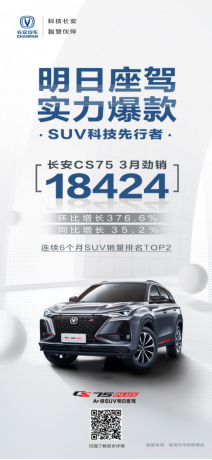 春暖花开,万物复苏。告别了疫情的阴霾,明媚的阳光,与灿烂的心情重回人们的生活,同时到来的还有令人振奋的消息。3月,长安CS75系列“满血回归”,劲销18424辆,环比增长376.6%,同比增长35.2%,助力长安汽车一举登顶中国品牌SUV市场销冠宝座。面对汽车市场销量下行,疫情突发影响严重,为何CS75系列还能取得如此优异成绩?背后的动力究竟来自何处? 不断进化,不断超越,终成合资品牌“狙击手” 作为长安旗下集全球研发体系之力打造的全明星作品,自2014年首款车型上市以来,长安CS75系列凭借前卫时尚的外观造型、澎湃的动力、五星安全表现以及最新科技配置,迅速成为中国紧凑型SUV市场的一款明星车型,迄今为止,CS75系列累计销量已经突破100万辆!傲人成就的背后,离不开长安CS75系列优秀的产品力,更源自长安汽车以客户为中心,以产品为主线的价值观,推动CS75系列不断超越,不断进化。 2018年,新长安CS75搭载APA4.0代客泊车系统闪耀上市,成为国内量产所有车型中,率先搭载该技术的智慧SUV。2019年9月,长安A+级SUV明日座驾CS75PLUS正式上市,迄今为止累计销量已突破10万辆,其中国SUV市场新车销量王形象也愈发深入人心。 3月,CS75PLUS销售12891辆,环比大涨655.60%!其明日设计、明日智慧、明日动力、明日安全四重明日价值,为具有未来视野、新思维的年轻消费人群带来了极具未来价值的全新选择,也成为长安汽车巩固市场地位,阻击途观L、日系SUV三驾马车等合资主流SUV的一柄利刃。 未来期待,今日享受,以超越满足消费者诉求 随着90、00后成为汽车消费主体,缺乏个性的设计已经无法打动这些新新人类。想要引发他们的关注,必须要用明天的思维,超越今天的认知和习惯,才能在激烈的市场竞争中展露头角。为此,长安CS75PLUS高度还原了“御岳”概念车的设计理念,以“御岳生命动感”的超前设计语言,创造出极具视觉冲击力的前卫造型,极大的满足了年轻消费者对未来的期待。 同时,基于年轻消费者对高品质生活的渴求,长安CS75PLUS还以高档材料、精细人体工学设计、严苛工艺和8.1°倾斜设计,开创了无与伦比的明日关怀驾舱。人体工程学座椅不仅采用分区域双硬度发泡工艺,还采用高档NAPPA皮纹材质加以包裹,触感柔软,带来堪比豪华车的高品质驾乘感。颠覆了以往人们对于自主品牌的品质感受,具备了与合资品牌一较高下的“软实力”。 强劲动力,极致油耗,表现“鲸”人才能领先同级 年轻人激情四射、活力充沛,对于速度与激情的追求从未停止。因此,光有出类拔萃外观和内饰设计,如果没有充沛的动力性能,依然很难打动他们。为此,长安CS75PLUS特别搭载了两套黄金动力组合,为消费者带来卓越的明日动力。其中,2.0TGDI+爱信8AT动力系统,最大功率171Kw, 最大扭矩360N·m,动力比肩3.5L自然吸气发动机。与之匹配爱信当前最为先进的8AT变速器,具有响应急速,多挡位切换平顺舒适等优势,满足激情驾驭的要求。 另一套1.5TGDI+爱信6AT动力系统,其发动机领先的外置式水冷中冷技术实现了更低的进气温度,降低发动机的爆震概率,最新的350bar高压直喷技术可以让燃油雾化更加充分,提高燃烧效率,进一步降低油耗及污染物排放。最大功率可达131kw,扭矩达265N·m,百公里油耗仅为6.7升,其搭载的进口爱信新款6AT变速器,经过1000万公里品质验证,并且燃油经济性提升8.6%以上,让动力性与经济性的完美融合,有效降低了日常养车成本。 不吹不擂,成绩说话,中保研6项优秀超合资 除了卓越的动力性能,对于驾乘者的人身安全,长安汽车同样高度重视,赋予CS75PLUS超越期待的明日安全。车身采用高达38.3%的热成型钢、超高强度钢占比,保证在碰撞事故发生时,整车结构稳定性及乘员舱空间完整性。同时CS75PLUS还配备六气囊组合打造全方位的碰撞保护矩阵,侧气帘能100%覆盖车窗,在意外发生的0.03秒内极速展开,目前,长安汽车是唯一配置如此大面积侧气帘的中国品牌。 继CS75车型在C-NCAP安全碰撞中以59分(满分62)问鼎最高分,刷新记录之后。CS75PLUS在2019年中保研第二批碰撞测试中,更是以6项优秀(G)的成绩超越了大部分合资品牌车型,再度刷新了市场对自主品牌安全实力的认知。 用户思维,以智取胜,产品力源自配置丰富程度 随着都市道路日趋拥挤,停车位也愈发紧张,狭小的停车位,令许多新手司机为之心惊。长安CS75PLUS以“用户思维”为导向,以明日智能为消费者提供解决方案。搭载的遥控代客泊车系统APA5.0,实现了人在车外即可自动泊车的领先科技,只需车位大于车身71厘米,在有清晰车位线的停车区域,车内人员可直接下车,车辆可自动寻找前方20米以内车位并泊入。 另外,面对新手司机普遍缺乏经验的问题,CS75PLUS配备了IACC集成式自适应巡航系统、AEB自动紧急制动辅助系统、LDW车道偏离预警系统、BSD并线辅助系统等智能辅助驾驶系统,帮助驾驶者从容面对各种道路环境。 除此之外,CS75PLUS搭载的TINNOVE OS汽车智能系统,深度整合腾讯车联的基础能力和腾讯核心生态资源,不仅提供丰富的娱乐功能,并支持40余种精细化场景智能推送,用户还可将微信里的位置信息,分享到车机屏幕,让汽车成为人们联络感情的媒介。 作为SUV市场主销区域,12-15万元紧凑型SUV车型大多以成本为导向。因此受限于成本与技术上的掣肘,已愈发无法满足时下年轻人对车辆更高的要求。而CS75PLUS依托长安汽车全面领先的技术实力,以四大明日价值,为