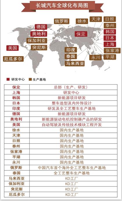 长城汽车已在全球形成研、产、供、销的完整体系布局,包括“11+5”全球生产布局和“七国十地”全球研发体系。 长城汽车俄罗斯图拉全工艺整车工厂为中国汽车品牌“走出去”探索了更完整的全球化路径。 长城汽车通过本土化深入布局海外市场,进一步了解所处市场的法律法规、消费喜好及质量管理体系,进而高效产出更加贴合当地市场需求的产品。 从2017年5月10日至今,中国品牌日创立已有三年。三年来,越来越多的中国品牌出海远航,走向世界。 在很多人眼中,“走出去”就等于“出口”,而真正的“走出去”不只是这么简单。作为中国汽车工业领军品牌的长城汽车,就用自己的方式提供了一个更多元、更有价值的“出海”模式。随着近两年全球化进程的加速,长城汽车已成为中国汽车品牌在海外的一张实力名片,为中国汽车品牌“走出去”树旗。 闯海外 全球化布局版图已成型 长城汽车是最早一批走向世界的中国汽车品牌,1998年,长城汽车就实现了整车出口,到2005年,长城汽车成为首家在海外开展组装业务的中国企业。2019年,长城汽车海外市场营业总收入已达55.22亿元,同比劲增66.61%;在俄罗斯、南非、沙特阿拉伯市场营收分别达到14.34亿元、10.82亿元、7.20亿元,分别同比大涨260.24%、46%、752.8%。 横扫全球的原因,在于根基足够扎实。研发方面,长城汽车已先后在日本、美国、印度、奥地利和韩国设立海外研发中心,具备SUV、轿车、皮卡三大系列以及动力总成的开发设计能力,构建了以保定总部为核心,涵盖欧洲、亚洲、北美等“七国十地”的全球研发布局。 长城汽车俄罗斯图拉工厂 除了研发,生产也是全球化布局的重要组成。长城汽车在厄瓜多尔、马来西亚、突尼斯、保加利亚等“一带一路”国家拥有5大KD组装工厂。2019年6月,长城汽车俄罗斯图拉工厂竣工投产,不同于普通的KD组装工厂,图拉工厂是中国汽车品牌首个海外全工艺独资工厂,同时也是中国制造业在俄罗斯投资的最大项目。“北上”八个月后,长城汽车启程“南下”,2020年初,长城汽车分别收购通用汽车旗下的印度塔里冈工厂和泰国罗勇府汽车工厂。计算下来,长城汽车已在全球拥有了11家全工艺整车制造基地和5家KD组装厂。 长城汽车全球化布局 在销售服务网络建设方面,截至2019年,长城汽车海外销售覆盖全球60余个国家,全球销售网络超500家。 一整套“组合拳”打下来,长城汽车已在全球形成研、产、供、销的全产业链布局,包括“11+5”全球生产布局和“七国十地”全球研发体系。以这样全产业链的“出口”方式,长城汽车称得上中国车企“闯世界”的标杆。 本地化策略 打造中国汽车品牌新名片 以前,中国汽车品牌以产品出口方式打造出了“MADE IN CHINA”的知名度,不过,如今的“中国制造”已经不再局限于产品层面,工艺技术标准“出口”已成趋势,这也是中国品牌走向国际化的必然出路。例如,长城汽车俄罗斯图拉工厂,就用自己的硬实力实现了“中国标准”的“出口”。 长城汽车俄罗斯图拉工厂 图拉工厂项目总投资5亿美金,规划年产15万辆,本地化率达到65%。厂区设计根据生产工艺进行整合,利用自身配套优势,通过空中输送及地面物流紧密结合,实施大焊装、大总装,消除中间环节搬运、存储浪费,实现简洁生产,大幅度降低土地资源浪费。 在生产工艺方面,图拉工厂设有世界最先进的全封闭式冲压车间和自动化率100%的焊装车间;高自动化的涂装车间设计有水性漆喷涂工艺和RTO废气焚烧技术,实现危险废物“零”污染;总装工艺采用双线体布置、模块化组装和柔性化设计,在满足承载和非承载两种品类车型生产的同时还可以提高作业效率和精准性。 在品质管理方面,图拉工厂对每台整车实施100%静动态全部检验,并由专业的整车路试检验员对车辆进行100%路试检验,保证交付给顾客的每一台整车全部满足质量及顾客要求。
