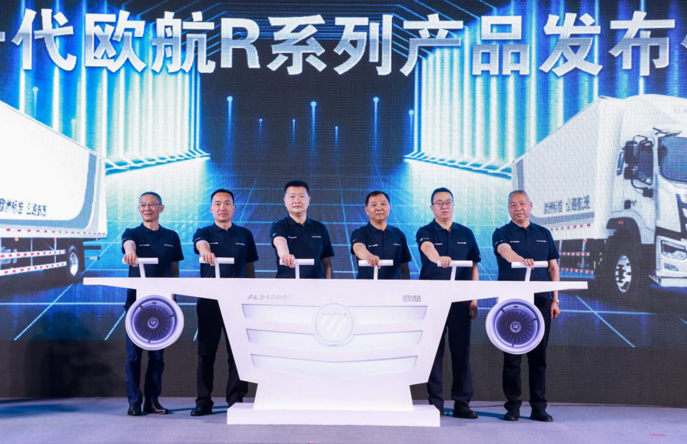 【河南省肉类协会会长刘承信、河南省物流采购联合会冷链分会会长,华夏易通物流董事长郅英武、省物流商会代表,天河汇海物流董事长,东方大运物流园总经理刘海江、福田汽车集团副总裁、欧航欧马可事业部总裁顾德华、北京福田康明斯发动机有限公司客户支持总监柴睿敏、福田采埃孚轻型自动变速箱(嘉兴)有限公司总经理赵勇共同发布全新一代欧航R系列产品】 全新平台赋能 全新一代欧航R系列产品尽展科技之美 作为福田汽车中卡战略业务,欧航超级中卡立足于大变革时代,为新一代用户定制而来。欧航欧马可事业部常务副总裁、营销公司总经理唐宏超表示,“全新一代欧航R系列产品完美承袭ME4平台的技术升级,以新一代技术赋予产品更卓越的性能表现,为中长途城际区域物流用户带来更高效的运输工具,在引领中卡技术发展潮流的同时,推动物流行业迈入智能高效的发展新时代”。