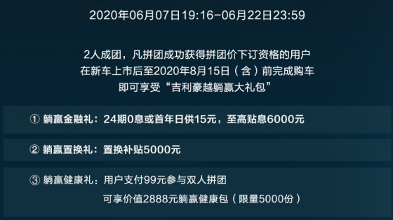 6月7日晚,在贯穿整个6月的“吉利好车节”如火如荼之际,“大大大空间SUV”吉利豪越化身“百变大大大店”,以一场海陆空三栖直播大秀正式开启史上最豪横的预售。豪越预售价为10.88—14.88万元,其中1.8TD+7DCT旗舰型5座为14.88万元。 同时,吉利豪越还携手20多个优选好货品牌,在直播间为用户带来了多重福利。当晚时长2个小时的直播中,累计观看人数3005万人次,线上意向购买豪越的留资用户超过20000名,豪越订单量突破了2000单。未上市便已火爆,充分彰显出吉利豪越的爆款潜质。 99元躺赢大豪越,预订可享“三大躺赢豪礼” 直播当晚,吉利品牌销售公司总经理宋军现身直播间,携手著名主持人李维嘉、人气主播小小莎,发布吉利豪越预售价的同时,也带来了预订豪越的超级大福利:99元躺赢大豪越,并在直播间现场抽取了3名6折购买吉利豪越的幸运用户。 据介绍,即日起至6月22日23:59,用户登录吉利官方商城,在线支付99元参与“双人拼团”预订豪越,即可享受“三大躺赢豪礼”:24期0息或首年日供15元,至高贴息6000元的躺赢金融礼;置换补贴5000元的躺赢置换礼;以及价值2888元的躺赢健康礼。 此外,用户也可以选择不参团的个人下单,支付199元即可享受躺赢金融礼、躺赢置换礼。 作为吉利首款大大大空间SUV,豪越以超大空间、豪横品质、越级智能躺赢同级,不仅拥有同级第一“69%的得车率”、2360L装载空间、2.2米移动“大床”、7独立VIP尊享座椅、19种灵活空间布局的超大空间,更搭载了ADB矩阵式LED大灯、智能三区独立空调、全新GKUI车机系统、智能三屏交互、全自动泊车以及L2级智能驾驶等越级智能科技配置。 此前更是以一颗仅164g重的车身螺栓,成功吊起了一座重达10吨的房子。十年正常工况下,吉利豪越可确保乘员舱永不漏水,整车底盘永不松动,车身关键部位永不锈穿。 史上最豪横的直播,飞机、游艇、车、卫星啥都卖 此次直播,除了发布豪越的预售政策,更覆盖了首次海陆空三栖直播、李维嘉首次抖音带货直播、首次直播卖卫星、《乘风破浪的姐姐》首次云探班等形式,堪称史上最豪横的直播。 直播一开始就开启“豪横”节奏:线上卖飞机、卖游艇。随着豪越预售价格的发布,海陆空三种出行方式顺利集齐。直播间还连线了王霏霏、白冰、郁可唯等影视明星,云探班《乘风破浪的姐姐》综艺节目,并联合海信、联想、百草味等20多个知名品牌,为消费者打造一个特价购物狂欢,从衣食住行各维度,全面满足消费者的品质生活所需。随后,直播间还上架了一颗可以发射入轨、卫星功能齐全的立方星。 从行业首个5G直播上市发布ICON,到吉利与大搜车共建国内首个“真直销·一口价”的数字化汽车直销新零售网络,再到吉利豪越海陆空三栖直播大秀,吉利汽车积极探索直播新模式,努力提升用户体验,也助力吉利在终端市场占有率的不断提升。 此次吉利豪越预售价的正式发布,也意味着吉利豪越正式进入了上市倒计时。预售的火爆,更预示着豪越将在大空间SUV市场不断“乘风破浪”。 |