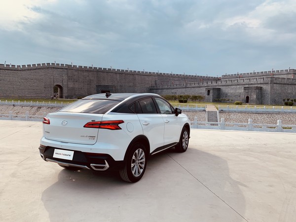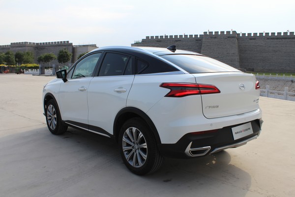 作为一款COUPE车型,车身侧面无疑最受人关注。双色的车身和银色的镀铬装饰条,强化了它的溜背属性,也把车顶弧线和车窗的造型很好的勾勒出来。GS4 COUPE是笔者理想中的掀背造型,好的掀背线条需要从B柱往下流,形成流畅而极富运动感的线条视觉效果。GS4 COUPE的长宽高尺寸为4577*1873*1646mm,轴距为2680mm。
