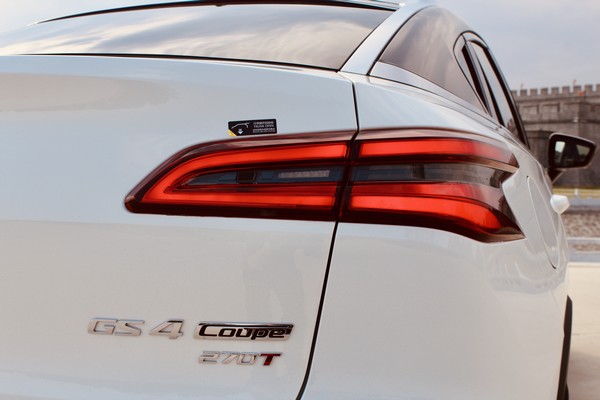 GS4 COUPE的尾灯跟家族其他两款车型完全不同,灯带简洁修长,扩展视觉宽度。另外,后备箱盖的折线设计则增加了立体感。GS4 COUPE配备了双边共两出的排气,符合其运动型车的定位。