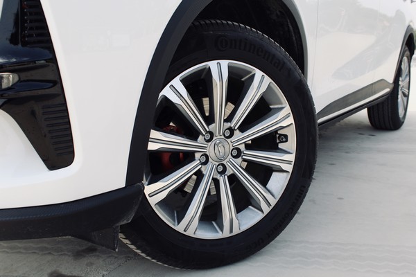 18英寸的密辐轮圈看着显大,造型气质也般配,前后刹车卡钳都使用红色涂装。轮胎采用的是马牌UC6系列轮胎,规格为235/55 R18,胎面宽度比普通版GS4(225/55 R18)宽了10mm对于操控性的提升是立竿见影的。