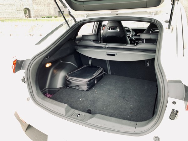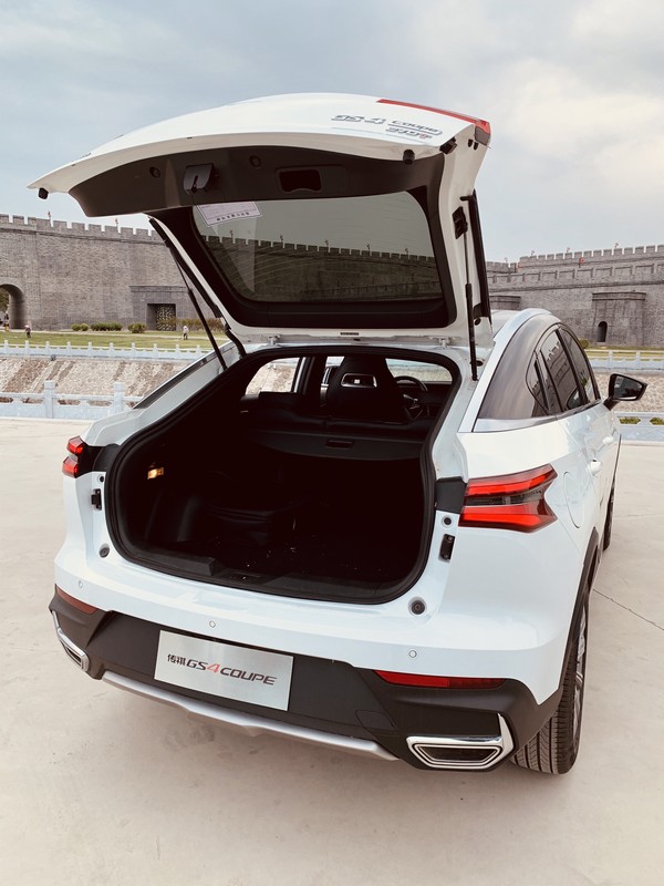 GS4 COUPE后备厢盖的开关藏在右侧尾灯里面,初次接触的时候或许要找找,但为了造型好看,忍了。后备箱尺寸方面,宽度99-138cm,纵深92-176cm,高度38-70cm,后排座椅靠背放倒之后,地板接近纯平状态。