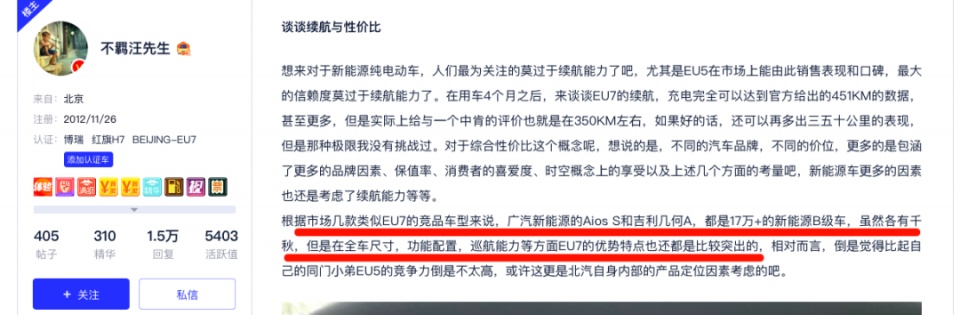 最近,《乘风破浪的姐姐》承包了热搜榜,多才多艺的姐姐们成团出道,在新能源汽车圈里,也有很多实力派车型,例如BEIJING-EU7,以颜值高、空间大、续航实在而“C位出道”。今天我们就通过车主不羁汪先生的视角,来感受下BEIJING-EU7的魅力。 不羁汪先生是论坛上颇有影响力的“网红KOL”,至今他已经发布了310篇精华帖,累计阅读量超过1500万。最近,他的一篇提车作业又火了,阅读量超过5.2万,帖子的主角正是BEIJING-EU7。 在帖子里,他这样介绍自己:“不羁先生年方三十有九,虽有家有室有业,但为了生活,京湘皖三城记的生活模式已经快四年了。”今年1月份,由于工作关系,需要换个车,“考虑到小城生活,上下班都是短途,开燃油车有点浪费,买新能源车不需要购置税”,当时BEIJING-EU7刚上市,“BEIJING汽车EU系列口碑一直不错,考量后决定,就它了!”自此,他拥有了人生第五辆车。 高颜值外观:真的高大上 这是个颜值即正义的时代,用户购车很重视“眼缘”,而高颜值的BEIJING-EU7正合不羁汪先生的审美。 “第一眼给我印象最深就是这灵魂大灯和刀锋回旋式轮毂。”不羁汪先生写到:两道亮如闪电的反C型LED大灯炯炯有神,刀锋回旋式明黑相间轮毂,车头处再加上大大的英文字母“BEIJING”,“看着真的高大上”。 EU7采用封闭式格栅,前包围处还加入了点阵式设计,搭配下方的C型日间行车灯,让整车看上去很别致;“笔直的腰线自头至尾贯通,棱角分明,个性突出”。 乘坐舒适性:比肩奔驰C BEIJING-EU7无论用料还是材质都非常有诚意,整车内饰很有档次。 其采用近几年风靡汽车中档市场的NAPPA真皮座椅,这令不羁汪先生“颇有些意外”,他在帖子里写到:“有汽车媒体人赞誉该车型座椅比肩奔驰C,毕竟这种工艺材质座椅之前还停留在BBA等豪华车型上”。座椅采用人体工程学设计,“头枕部、靠背两侧柔软度明显要比中间舒适些,弧度与造型,都符合人体乘坐习惯。”驾驶席还具备四项气动腰托,前排座椅还拥有3档通风和加热功能。 不羁汪先生最满意的一个细节是,EU7驾驶席上,腿部所能碰触到的地方都采用了软皮包覆,“大多数人开车的时候腿基本贴着中控台下段,长途驾驶的话硬硬的塑料真的硌人”,而EU7的这个设计是“绝对的人性化考虑和安排”。 空间配置:同级无对手 BEIJING-EU7车身尺寸为4805mm*1835mm*1528mm,轴距达到2785mm,“空间妥妥滴”。而且,“中央扶手盒内储存空间够深,基本重要玩意都可以放在这里,手套盒和门板储物格空间够大,后备箱足够一家三四口子出门放行李。” EU7拥有丰富的智能配备,包括双12.3寸高清大屏、智能语音、智能网联等,通过这些功能,“你想知道的、你想了解的、你想运用的,触屏或者语音即可。” 不羁汪先生购买的是BEIJING-EU7逸潮版车型,这款车配备了全景影像、车道偏离预警、低速动态物体识别等智能驾驶辅助系统,“后方有人想要超车时,或者你偏离轨道时,它都会非常人性的自动提醒,这对于日常驾车还是很有帮助的。” 此外,EU7还拥有外放电、手机无线充电、“CN95”级空气净化系统、雨量感应雨刮、电动遮阳帘、外后视镜加热等功能配置,“都非常实用”。 驾驶性能:续航实在,动力强劲 BEIJING-EU7工况续航达到451km,不羁汪先生介绍,在正常用电情况下,跑380km没问题,有论坛网友反馈:“EU7续航很实在,开10公里就是消耗10公里的电,还有智能仿生温控系统,冬天也不怕续航虚了”。出色的续航表现得益于EMD3.0Pro智能电控系统、源自宁德时代的高密度三元锂电池以及Onepedal单踏板能量回收系统的综合作用。 EU7搭载了永磁同步电机,最大功率达到160kW、最大扭矩达到300N·m,百公里加速仅需8.4s,动力性能堪比2.0T燃油车,用不羁汪先生的话来说,就是“油门随便踩,听不到发动机的轰鸣声,只有安静的如离弦之箭向前疾冲”。 作为一个“阅车无数”的网红KOL,不羁汪先生在帖子结尾评价到:与广汽新能源AionS和吉利几何A等竞品车型相比,BEIJING-EU7无论乘坐舒适性、空间配置还是续航能力都比较突出。 目前购买BEIJING-EU7可享三电终身质保、至高2年免息、至高1.5万置换补贴、赠送充电桩等福利,综合优惠至高28900元!感兴趣的小伙伴可咨询当地4S店,或登陆BEIJING汽车官方旗舰店(https://item.jd.com/70700684123.html)了解详情。 |
