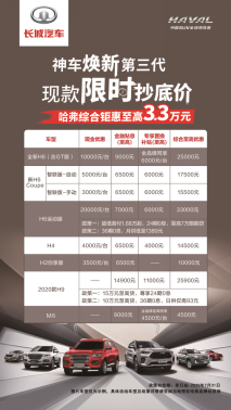 有人说,一生当中至少要有两次冲动,一次是奋不顾身的爱情,而另一次则是在买车时的怦然心动。疫情过后,大多数消费者都有了购车的打算。不管是日常家用还是短途自驾, SUV车型因为空间大、底盘高、实用性强等优点,成为了国民购车首选。这其中,哈弗H6堪称翘楚——累计85个月SUV销量第一,单一车型全球销量超300万辆。可以说在国内SUV领域,哈弗H6几乎没有对手。如果你还在为买车犹豫不决,那么接下来的这三个理由,会让你直接选定哈弗H6。 第一个理由:换代在即 至高3.3万元现款钜惠等你拿 哈弗H6自初代产品上市到现在,已经在市场上开售了九年之久,如今也终于要迎来第三代产品。换代在即,现款车型优惠幅度巨大。现在购买全新哈弗 H6(含 GT 版),可享受 10000 元现金优惠、至高 9000 元金融贴息以及至高 6000 元置换补贴,综合至高优惠高达 25000 元。购买新哈弗 H6 Coupe 和哈弗 H6 运动版分别可享受综合至高 17500 元以及 33000 元的购车优惠。 我们以哈弗H6的主销车型全新哈弗H6来说,以官方指导价13.60万元的1.5GDIT自动铂金超豪版为例,首先有1万元现金优惠,价格降至12.6万元;如果你选择贷款购车,还能再享受到最高9000元的金融贴息,相当于11.7万元入手;但这并不是最终的价格,如果你有一辆旧车,选择了置换购买,在以上价格的基础下,还能享受到最高6000元的置换补贴。 最终,原价13.6万元的全新哈弗H6 1.5GDIT自动铂金超豪版,你只需要花11.1万元就能买到。 我们来看看11万左右的价格,你能买到什么车——中低配的长安CS75 PLUS、比亚迪宋Pro、荣威RX5。回头再看看全新哈弗H6,高清360°环视系统、自动泊车入位、车道保持、倒车侧向警告、上坡辅助、陡坡缓降、盲点监测,前排座椅加热、车联网、四门车窗一键升降、全车8扬声器……要科技有科技,要安全有安全,要享受有享受,11万买辆高配的车回家,它不香么? 第二个理由:科技护航,智慧出行与你随行 不仅品价比远超同级,哈弗H6的硬核产品力是吸引消费者购买的根本原因。如今,智能汽车已经不再浮于遥不可及的科技层面,而是正在慢慢渗透到我们的日常生活当中,为我们的出行生活带来更多的便利和乐趣。比如它不仅懂得如何上网、如何与你的手机互联、听懂你的语音命令,还能在炎炎夏日驾车之前,预先把空调设置好,将出行前的准备工作打点得井井有条,把你服侍得妥妥贴贴;此外,它还能眼观六路耳听八方,帮你判断车速、减轻疲劳,时时刻刻照顾着你的出行安全......而这一切,都在哈弗H6上完美体现!比如哈弗H6的主销车型-全新哈弗H6自12.1万元的铂金冠军版以上车型均搭载哈弗智能生活云Hi-Life系统。该系统不仅拥有智能语音交互、在线音乐、百度地图、手机远程控制等功能,还支持在线支付、双向车载WIFI、OTA在线升级、专属人工坐席、道路/紧急救援等服务。 个人认为这是全新哈弗H6碾压一众竞争对手的“杀手锏”之一。首先说智能语音交互,该系统接入了64个语音垂类,支持导航,音乐等常用场景免唤醒。它就像你的贴心助手和朋友,能在你需要的任何时候及时响应你。你无需动手,只要动动嘴,一些常规操作它就都帮你完成了。 这套系统由哈弗同百度联合开发,比如车载导航就是专属的车机版百度地图,不仅画面完美适配哈弗H6的横屏,同样也能够显示实时路况、3D视角等手机端才有的功能。当然,手机目的地发送到车机,并且和队友组队一样能实现,而且不管对方使用的是百度地图的手机版还是车机版,都能完美匹配。 另外,在线支付功能也能让你用车更便捷。例如使用点外卖的功能后,中控屏会自动生成付款二维码,直接用微信或者支付宝扫码就能支付。如果你体验过正值饭点,需要点餐的时候,手机却快没电了的经历。相信我,你会爱上这项功能的。 当然了,各种APP和小程序的应用,也让车机显得更加智能。例如,系统自带QQ音乐、喜马拉雅、爱奇艺视频等APP,登录个人账号后,还能够和手机端互通,同步历史记录和VIP权益等信息。 虽然这只是一个不起眼的点,但有些车机的同一个账号在车机和手机端就无法互通,其实非常影响体验。对了,哈弗H6还提供3年基础和娱乐功能流量费用全免的政策,刷《隐秘的角落》时,再也不用担心流量的问题。 反观合资品牌竞品, 同等价位下我们只能买到本田CR-V、日产奇骏的低配车型;而配置上向来抠抠索索的合资品牌,顶配车型也没有匹配如此智能,功能如此丰富的车机系统,更何况低配版本。车子买来是自己用的,买就买智能的,科技配置丰富的,用着舒心的,何必委屈了自己。 第三个理由:安全配置给力,用车更放心 智能科技配置丰富的同时,“SUV要更安全”恐怕是多数消费者对这种车型的一种朴素的认知。事实上,在安全方面,哈弗H6的主被动安全算得上是同级别竞品的榜样了。例如官方指导价接近的长安CS75 PLUS 1.5T自动尊贵型,虽然多了主动刹车功能,但却没有车道偏离预警、车道保持辅助系统等主动安全配置。 反观全新哈弗H6,配备了并线辅助、车道保持、车道偏离预警系统等主动安全配置,能够对车辆的行驶状态进行实时监控,如果发现车辆跑偏之后会及时对驾驶员发出提醒;同时还可对盲区和相邻车道的车辆进行探测,及时发现行车过程中的潜在危险,帮助驾驶员提前做出判断。此外,高清360°环视系统也为日常停车提供了较多的便利性,同时透明车身的功能,可以让驾驶员