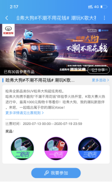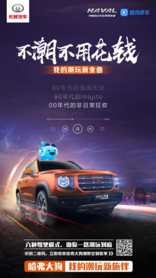 在潮流歌单收获超90万的播放量之际,7月13日,哈弗大狗与酷狗音乐再度联手,推出“潮玩K歌大赛”,深入年轻用户的音乐生活场景,给当代都市青年带来一波“潮野节奏”,嗨歌一夏! 潮玩K歌 唱出你的潮玩Voice 当潮流音乐逐步成为年轻人愈发常见的休闲娱乐方式,懂潮会野的哈弗大狗也用音乐快速召集热爱音乐的潮野青年。7月13日-7月19日,哈弗大狗将与酷狗音乐联合举办“潮玩K歌大赛”,你的音乐风格由你来定义。目前,K歌大赛活动火热进行中,登陆酷狗音乐APP进入“K歌”模块,进入活动专题点击【我要参加】,即可选择一首潮流歌单马上K歌。 更多惊喜福利还在等你,现在成功参与“潮玩K歌大赛”,既有机会赢得价值1000元的京东购物卡、含酷狗彩虹糖真无线蓝牙耳机的哈弗大狗定制礼盒,更有酷狗音乐豪华VIP季卡等惊喜好礼送出,即刻分享到微信、微博等社交平台,赶紧邀请好友一同参赛,唱出属于你的潮玩Voice吧! 开启“歌单循环”模式 完美视听带你潮玩享“乐” 在潮玩场景中开启“歌单循环”模式,哈弗大狗不仅以“全民K歌”的方式调动全网音乐热情,还洞悉潮玩年轻人最喜爱、最快捷的听歌路径,精心打造出一份集流行、嘻哈、摇滚等音乐风格于一体的潮流歌单。想跟着《反转地球》、《离开地球表面》一起举起双手、超越地心引力?或是想跟着《将军》、《不用去猜》一起不羁宣言?现在到酷狗音乐搜索“不潮不用花钱”,即可收下你的专属歌单! 在追逐个性态度与野性自由的路上,完美的“视”、“听”感受缺一不可。除了以潮流歌单的形式给予你听觉震撼,哈弗大狗还以潮流设计带给你时尚前卫的视觉冲击。在“心潮力量美学”全新设计语言的运用下,哈弗大狗与强烈炫酷的音浪相合,无论是新车的黄金海岸分离式腰线与天际线横贯式尾灯,还是刚劲的大堡礁形态车身与峭壁感处理的立体型面,音乐都为全新造型带来更多动感气息,助力潮野青年潮玩享“乐”。 “蝰蛇”逼真驾临 极致音娱互动激发潮玩潜力 如果说音乐引领了年轻人的潮流生活方式,那哈弗大狗与酷狗的定制音效则为潮玩音乐解锁了更多可能。通过合作酷狗音乐蝰蛇音效,哈弗大狗不仅为“音乐发烧友”带来更极致的音乐体验,也将全新座舱升级为震撼的潮玩现场,只要在耳机或扬声器类型中设定环绕立体声、音乐风格等方式,即可体验到3D环绕的立体混响,体会潮玩音乐的逼真“临场感”。 尖端科技的运用不仅以强烈音效玩转音乐场景,更使哈弗大狗得以将“极致”延续到产品体验中,新车除了搭载全新V3智能平台,为消费者提供更智能、更安全的新一代智能座舱,还配备有2把差速锁,专业智能四驱系统及六种全地形驾驶模式,让更多音乐爱好者在驾驶中也能体会到音娱互动的动感潮流,激发出潮野青年的无限潮玩潜力。 不难看出,从打造“哈弗大狗 我的潮玩新旅伴”标签开始,不论是潮流歌单、专属定制音效还是潮玩K歌大赛,哈弗大狗始终将“与用户玩在一起”的用户思维贯穿始终。而在“去中心化”的互联网浪潮下,哈弗大狗在关注到年轻人对音乐的狂热喜爱的同时,也用多样化的娱乐营销互动调动年轻用户主动参与,以UGC的方式快速聚集起专属潮野青年的音乐社区。 除了合作酷狗平台潮玩音乐圈,哈弗大狗还同步发力生活、社交圈层,联手虎扑、搜狗解锁更多潮玩姿势,无限潮力一触即发,只等你开启。想要畅听潮流音乐“驾临”潮玩现场?与哈弗大狗一同感受潮流音乐的魅力?还在犹豫什么,快来同哈弗大狗一起参与! |