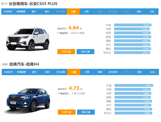 与哈弗H4相比,长安CS55 PLUS在配置方面实在有些“小气”。不仅没有发动机启停、自动驻车、自动大灯等科技配置,甚至连大灯组都还是卤素光源的。 对汽车发展历史稍有了解的消费者可能知道,车辆的照明设备经历了从卤素光源——氙气大灯——LED发光二极管的衍进过程。在LED大灯的工作原理中,省去了传统卤素大灯和氙气大灯先将电能转化为热能,再将热能转化为光能的中间环节,将电能直接通过LED芯片转化为光能,工作温度更低,且节能性能稳定,启动迅速没有延迟,使用寿命也更久。 如今,不光是在汽车领域,我们日常使用的各种光源都已经普及为了LED,而长安CS55 PLUS还在采用落后于主流的卤素光源实在是缺乏了一些诚意。 此外,全景天窗、雨量感应式智能雨刷等实用性配置在长安CS55 PLUS上也并未出现,甚至连后排出风口这一家庭用车场景下的刚需配置也缺失,而且除此之外,缺少雾灯、后备箱空间小等问题也让车主朋友们有些难以接受。 不凡实力造就良好口碑 哈弗H4让用户更满意 细心的网友们可能已经发现,网购消费时,我们选择购买价值不菲的智能手机,往往都优先选择口碑评价排名靠前的华为、小米和苹果,而这就是我们经常说的口碑效应。同样的,在汽车领域,哈弗H4之所以能屡获消费者青睐,好的口碑评价也着实助力不少。比如在第三方汽车垂直网站爱卡汽车的用户综合口碑对比中,哈弗H4在操控、价格、油耗等多个维度都大幅领先,综合口碑得分在与长安CS55 PLUS的对比中无悬念胜出。 究其原因,还要归功于哈弗作为专业SUV品牌在底盘调校上的深厚功底。哈弗H4和长安CS55 PLUS的悬架组合虽然都是前麦弗逊+后独立悬架的组合。但在实际体验中,常常能听到车主朋友向我们反映,长安CS55 PLUS悬挂僵硬,减震差,坑洼路面有明显颠簸,震动感强烈等问题。相比起来,哈弗H4在悬挂调校上显得更为专业,使得车辆能提供更好的路感,驾驶员在行驶时的操控感也更为优异,获得了用户的一致好评。 另一方面,两车虽然均采用了自主研发的1.5T涡轮增压发动机,但哈弗H4搭载的1.5GDIT发动机是中国品牌首个采用CVVL连续式气门升程调节技术的产品,并拥有多项自主专利,它与同为自主研发的7DCT湿式双离合变速器组成黄金搭档,在动力响应、燃油经济性方面都有着长足的进步。 而反观长安CS55 PLUS,虽然在动力参数上和哈弗H4的1.5GDIT发动机十分接近,其采购自爱信的6AT变速箱在可靠性方面也是有口皆碑,但毕竟是已经过时的产品,在换挡响应和对于油耗的优化上并没有优势,相对比之下哈弗H4在动力表现和燃油经济性方面也占据了优势。 在如今的汽车市场中,可供选择的车型越来越多,但能真正做到像哈弗H4这样在性价比、操控性、燃油经济性和用户口碑评价方面,都有着出色表现的座驾少之又少。很明显,相比于哈弗H4带来的各方面的诚意,长安CS55 PLUS并不是消费者的“Mr Right”。所以,如果你还在二者之间犹豫不决的话,看完以上的评测对比,哈弗H4则是你的明智之选。 |