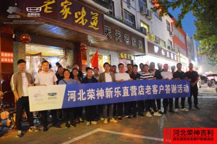 2020年9月24日 下午18点所有邀约客户陆续进行了签到进场,久别的重逢再次进行了相遇。 为感谢新老客户对荣神新乐直营店一直以来的支持与鼓励,借此中秋佳节来临之际特举办本次吉利老客户答谢活动。为将这次答谢宴办得有意义、有价值,真切表达对历年来认吉利品牌提供服务的新老客户的感恩之情,新乐直营店在3天多时间里,邀约到近20组客户来到老家的味道饭店现场。 答谢晚宴开场前,荣神直营店总经理安永辉代表吉利新乐直营店公司向所有到场的新老顾客鞠躬致敬,并一一敬酒致谢感恩,表达了新乐吉利直营店对尊敬的客户的感恩之情。 随后又为大家每个人发上伴手礼一份,以表达多年来对客户的感恩之情。 客户最大的价值点,莫过于提供新的客户、荣神吉利新乐直营店秉着专业且真诚的服务。对于每个老客户而言,收获到最大的欣慰莫过于得到客户的认同。
