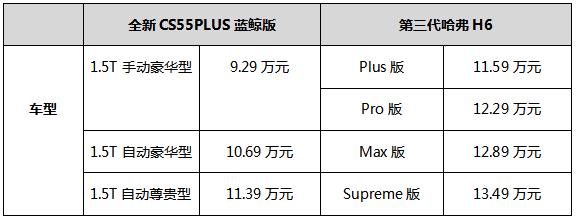 为何“瓦罐”旅行车在欧洲经久不衰?为何“油耗子”皮卡在北美始终受宠?为何国人对SUV无论大小都青睐有加?背后除了地域、交通,以及消费能力的差异,群体的示范效应也不可忽略。尤其对于喜欢随大流的国人来说,似乎这样才是最简单,最省心,也是最安全、最保险的选择。殊不知,随着新技术层出不穷,新车型不断出现,随大流的购车方式已经落伍,众口不是总能铄金,神车也非不可超越。不信?就拿刚刚上市不久的两款紧凑级SUV——长城汽车第三代哈弗H6、长安汽车全新CS55PLUS蓝鲸版来次比较,看一看随大流是否依然是最正确的选择。 价格不是唯一,唯一的是手里有多少预算 相比选择全尺寸SUV的消费者,选择紧凑级SUV的人群往往对于价格比较敏感。所以如何定价就成为吸引消费者的关键一环。第三代哈弗H6共有4款车型,包括Plus版、Pro版、Max版、Supreme版,厂商建议零售价格分别为11.59万元、12.29万元、12.89万元、13.49万元。而全新CS55PLUS蓝鲸版共推出三款车型,包括1.5T手动豪华型,售价9.29万元;1.5T自动豪华型,售价10.69万元;1.5T自动尊贵型。售价11.39万元。 从价格上来看,第三代哈弗H6整体高于全新CS55PLUS蓝鲸版,这对于消费者而言也就意味着更高的起点。如果手中购车预算12万元以内,那么只有第三代哈弗H6的入门车型1.5T自动Plus车型可以考虑。但是如果选择全新CS55PLUS蓝鲸版,则可以买到顶配的1.5T自动尊贵型。因此从价格上来看,全新CS55PLUS蓝鲸版似乎已经略胜一凑。不过众所周知,想要打动消费者光有便宜的价格还远远不够,汽车的动力性能如何?配置内容如何?安全表现如何?同样也非常重要。具体到两款车型来看,究竟谁更值得购买?还要继续比下去,真相才能水落石出。 动力不是一切,但是没动力一切都不好办 随着国内外排放法规的日益严苛,小排量+涡轮增压已经蔚然成风,所以第三代哈弗H6与全新CS55PLUS蓝鲸版都选择了搭载1.5T涡轮增压发动机,并且都配备7速湿式双离合变速箱。不过除此以外,两者的动力表现却截然不同。 第三代哈弗H6搭载的代号GW4B15A的1.5GDIT EVO发动机,最大功率124kW,峰值扭矩285N·m。而全新CS55PLUS蓝鲸版搭载的蓝鲸NE 1.5T高压直喷发动机,最大额定功率132kW,在1250转即可输出300N·m峰值扭矩。相比前者,无论功率,还是扭矩都明显更胜一筹。 全新CS55PLUS蓝鲸版搭载的蓝鲸NE 1.5T高压直喷发动机 第三代哈弗H6搭载的1.5GDIT EVO发动机 此外,在消费者关注的油耗方面。目前,第三代哈弗H6工信部综合油耗数据尚未公布,但是厂家宣称百公里油耗为6.6L。而全新CS55PLUS蓝鲸版的工信部综合油耗仅为百公里6.4L。两者油耗差距看似不过1L左右,但是积少成多也是一笔不小的开支。所以蓝鲸NE 1.5T高压直喷发动机采用的同级唯一“双出口集成排气歧管+双涡管电控轮增压”技术,以及独创的“AGILE敏捷”空气导流式高效超净燃烧系统,显然具有非常现实的意义,既能帮助车主降低用车开销,同时也起到节能减排的作用。 配置不能责全,但是配置真的不能太简单 除了追求发动机的强劲性能,消费者对于配置的热情同样高涨。所以第三代哈弗H6与全新CS55PLUS蓝鲸版都对配置非常重视。以售价11.59万元的哈弗H6 1.5T自动Plus车型与售价11.39万元的1.5T自动尊贵型进行比较。不难发现两款车都采用了前麦弗逊后多连杆独立悬架,都采用电动助力。都具备前双安全气囊、前排侧气囊、前后排头部气帘,以及胎压显示,都具备丰富的主动安全系统(全新CS55PLUS蓝鲸版搭载大陆ESC全新车身电子稳定控制系统。包含TCS/BA/HHC/HDC/DBF/ROM等功能)。都标配定速巡航、后倒车雷达、无钥匙启动系统,多功能方向盘、液晶仪表、GPS导航、车联网、OTA升级。此外,LED自动头灯、雨量感应式雨刮、自动空调等内容也是两款车的标配。 全新CS55PLUS蓝鲸版中控台 第三代哈弗H6中控台 当然除了众多共性之外,两款车在配置上也存在不少差异。例如,在倒车影像方面,第三代哈弗H6的1.5T自动Plus车型提供的还是普通2D画面,而全新CS55PLUS蓝鲸版1.5T自动尊贵型却配备了360度全景影像。哈弗H6的1.5T自动Plus车型具备后者没有的发动机启停、自动驻车,方向盘换挡、疲劳驾驶提示等功能。 全新CS55PLUS蓝鲸版具备可开启全景天窗 而全新CS55PLUS蓝鲸版1.5T自动尊贵型则拥有前者没有的可开启全景天窗、车顶行李架、内置行车记录仪、主驾驶座位电动调节、前排座椅加热功能,后排座椅中央扶手、可电动折叠的后视镜、加热、锁车自动折叠的后视镜,以及车载空气净化器、负离子发生器等配置,且全系搭载PM0.1级复合抗菌抗病毒滤芯,采用多层高效过滤网,可高效过滤≥0.1?m颗粒物,对≥0.3?m颗粒物过滤效率达95%以上,能有效阻隔病毒附着颗粒及其他粉尘颗粒。 全新CS55PLUS蓝鲸版语音控制系统具备多轮语音对话功能 并且,全新CS55PLUS蓝鲸版还具备强大的智能语音交互能力,一句“你好小安”,即可实现多媒体系统、导航、电话、空调、天窗等众多功能的操作。而且语音交互系统还实现了多轮对话能力,在一次唤醒"小安"之后,无需多次唤醒即可执行接下来的其他指令,相比普通语音系统更便捷,更顺心。 全新CS55PLUS蓝鲸版座椅采用高档NAPPA皮纹材质 值得一提的还有全新CS55PLUS蓝鲸版的内饰,不仅座椅采用性能优异的NAPPA皮纹材质,包裹感十足,柔软度、密实度和弹性兼顾;而且整车内饰皮革占55%以上,除座椅外,主要分布在4个门内饰板、