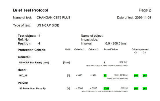 11月8日,中国汽车工程研究院(以下简称“中国汽研”)举办了国内首次“双美标”公开碰撞测试,在现场专家和媒体的见证下,受测车型长安CS75PLUS以高分表现通过了27°侧面碰撞和80Km/h追尾碰撞等测试项目,再度展现了中国品牌汽车安全实力。 此次“双美标”公开碰撞测试采用的是美国高速公路安全管理局(NHTSA)和美国公路安全保险协会(IIHS)的测试方法,其27°侧面碰撞、80Km/h追尾碰撞等测试项目,可以全面展示受测车辆面对侧面碰撞、追尾碰撞等事故场景下的安全表现,对于保证驾乘者的安全,促进中国车辆安全标准的提升都具有积极的意义。 “27°十字路口死角碰撞”表现:全面防护不遗余力 作为“双美标”公开碰撞测试的受测车型,长安CS75PLUS曾在中保研C-IASI碰撞测试中获得“优秀”评级,安全表现超越了大部分合资产品。 在众多碰撞交通事故中,由于车辆侧面撞击点距离乘员只有30厘米不到的空间,因此侧面碰撞成为致死率最高的“杀手”。当侧面碰撞即将发生时,驾驶员都会下意识将车辆向一侧猛打,这也造成了事故车辆之间通常都会出现30°以内的夹角。结合现实驾驶场景,“27°十字路口死角碰撞”将碰撞角度设置为27°,碰撞时速由国内碰撞测试常见的50km/H提高到62km/h,这带来了更高的挑战。 在“27°十字路口死角碰撞”测试中,长安CS75PLUS前后排假人的伤害风险均达到了U.S.NCAP五星标准。其中重量为72kg前排男性假人(ES2-re)得分全部为绿色,绿色代表最高的成绩,后排45kg女性假人(SID2s)得分全部为绿色,绿色代表最高的成绩,根据U.S.NCAP评分标准,前后排假人均获得了五星评价。 具体来看,CS75PLUS前排乘员头部HIC才20,受到重伤或者死亡的概率小于0.01%,后排乘员头部HIC才63,受到重伤或者死亡的概率也小于0.01%。按照U.S.NCAP假人头部伤害评价(HIC),一般认为HIC超过650就会有较大概率发生伤亡。 同时长安CS75PLUS车身变形极小,焊点未曾出现撕裂;采用封闭型目字截面结构航空铝材料的防撞横梁有效消除了外来冲击力,车辆B柱变形侵入量仅有143mm,充分证明了在侧面碰撞发生时,长安CS75PLUS的高强度车身能够充分保障乘员生存空间。 而在碰撞发生后,长安CS75PLUS侧气囊侧气帘0.025秒内就能完全展开为乘员提供全面保护。与此同时,车辆双闪自动开启,车门自动解锁,方面乘员逃生。且在碰撞后长安CS75PLUS的油箱也未出现漏油情况。凭借出色的乘员防护实力,长安CS75PLUS在“27°十字路口死角碰撞”测试项目中,获得了优秀的评价。 “80Km/h追尾碰撞”测试:无惧连环碰撞! 追尾碰撞是所有车辆事故中最普遍的碰撞形式,严重的追尾事故会导致车辆油箱漏油、起火燃烧,造成A柱和C柱之间的生存空间严重挤压,使乘员无法得到救援。 此次“80Km/h追尾碰撞”测试将碰撞速度提高至了目前全球追尾碰撞法规中速度最高的80km/h,而且为了重现交通事故中最极端的情况,刚经历“27°十字路口死角碰撞”后的长安CS75PLUS未经修理和零件更换直接参加测试,通过严苛的连环撞击来检验CS75PLUS的车辆安全性能。 长安CS75PLUS防追尾设计中将整车分为低速吸能区、高速缓冲隔离区、乘员保护区。合理的结构设计可有效将碰撞能量分散传递到车辆前部,降低局部侵入量,达到1000mm的后部碰撞空间足以防止乘员舱受损和燃油箱发生变形挤压,采用高强度钢材的后纵梁能够抵御较大碰撞冲击。与此同时,自动紧急制动系统(AEB)等主动安全配置,更可从源头上避免事故发生。 刚经历了“27°十字路口死角碰撞”的长安CS75PLUS,在“80Km/h追尾碰撞”中,后纵梁有效吸收了碰撞能量,使碰撞产生的尾部变形仅发生在行李箱内,未对车内假人造成损伤。且在经历了高速碰撞后,长安CS75PLUS的车门、车辆灯光信号、后悬架均保持正常状态,油箱也未发生损坏。在追尾碰撞中的全能安全表现,充分证明了长安CS75PLUS的安全实力。 长安汽车安全研发:以客户为中心的全面关怀 近年来,长安汽车为给用户带来功能超前的产品,依托“六国九地”全球研发体系,打造了由120位专家及工程师组成的安全研发团队,安全领域开发包括CAE分析、试验、产品开发三部分。同时,长安还投入2亿元构建了业内领先的碰撞安全试验室。长安碰撞试验室是国家重点试验室,由整车碰撞试验室、台车模拟碰撞试验室和零部件、行人保护试验室三部分构成。可进行碰撞安全法规适应性开发、车型C-NCAP、Euro-NCAP星级评价性能匹配与研究、约束系统安全保护性能匹配、车身抗撞性研发、约束系统零部件性能控制相关的各类试验。基本可完成全球范围的碰撞安全试验标准的各项试验。 截至目前,长安汽车已掌握整车被动安全六大技术领域48项核心开发技术,具备了完全自主的安全开发能力,将长安特色安全技术覆盖到了全系产品。在车型开发过程中,全新整车级开发,CAE分析会进行200次以上、整车级试验会进行70次以上,投产后还会进行一致性验证。在先进技术加持下,长安逸动不仅是新版C-NCAP首批五星车,而且获得中国汽车安全“星盾奖”,达到了国内汽车安全的最高水平,陆续逸动XT、睿骋、CS75、CS55荣获五星安全评价。CS75PLUS更是荣获中保研、C-NCAP两项最高安全评价。 而此次长安CS75PLUS在“双美标”公开碰撞测试中优异的安全性能表现,更进一步验证了长安汽车的安全研发实力。如今中国汽车品牌在安全方面已经可以与合资品牌并驾齐驱,为更多的