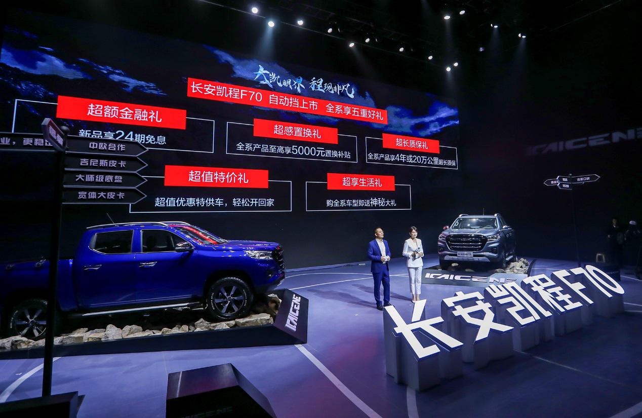 12月22日,长安凯程F70汽油自动挡车型在河北嘉睿达正式上市,河北多家主流媒体见证了长安凯程F70现场发布的高光时刻。本次上市新车包括两驱豪华版、四驱豪华版和两驱行政版、四驱行政版在内的4款车型,售价为9.98-13.48万元。值得注意的是,10万元内的起售价,打破了皮卡市场的原有定价规则,成为目前国内消费者能买到的同级最超值自动挡大皮卡。 盘点市面在售的自动挡大皮卡,起售价均为11万元起,而长安凯程F70自动挡车型直接打破了自动挡皮卡的定价潜规则,将价位拉进10万以内。同时,长安凯程还提供了一系列的购车优惠政策及4年20万公里超长质保,进一步提升了长安凯程F70自动挡车型的性价比。