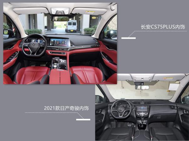 配置篇:功能要全,智能要丰富 同级别车型对比中,自主品牌配置更高已经是大家公认的概念。而如今,智能网联高速发展,自主品牌再一次赶在了前面。当然,合资品牌也紧随其后,开始为老将们搭载各种智能化配置。2021款奇骏就在智能化方面进行了升级,从次低配车型起,均搭载了并线辅助、车道偏离预警系统、定速巡航等辅助功能,不过要想拥有更高阶的车道保持、主动刹车以及自适应巡航等系统,就只能选择售价23.13万以上的2.5L版本了。 相比之下,长安CS75PLUS在智能化方面的配置就显得诚意满满。作为长安汽车A+级明日座驾,CS75PLUS已经达到L2级自动驾驶的水准。借助全车搭载的12个超声波雷达、3个毫米波雷达、5个摄像头,让驾驶者解放双脚,实现自动跟车,减轻驾驶疲劳。 在IACC自适应巡航系统的“指挥”下,CS75PLUS具备单车道自动辅助驾驶、交通拥堵辅助、自动过弯减速、智能限速辅助、车道保持辅助。还有LDW车道偏离预警系统、BSD并线辅助系统,以及360度全景影像系统、AEB自动紧急制动辅助系统。不仅比售价24.43万的2021款奇骏顶配车型更加全面,而且价格优势也非常明显。 不仅如此,CS75PLUS还搭载了长安汽车自主研发的APA5.0遥控代客泊车系统。除了自动寻找车位完成泊车外,用户通过手机APP和实体钥匙,都能在车外轻松实现一键遥控泊入,95%以上的停车场景都可以适用。还有12.3英寸液晶仪表+中控屏的双联屏设计、手机互联/映射、64色氛围灯等营造科技感创造便捷的配置,都是2021款奇骏所没有配备的。相比之下,无疑长安CS75PLUS能带给用户更多的便捷和舒适体验。