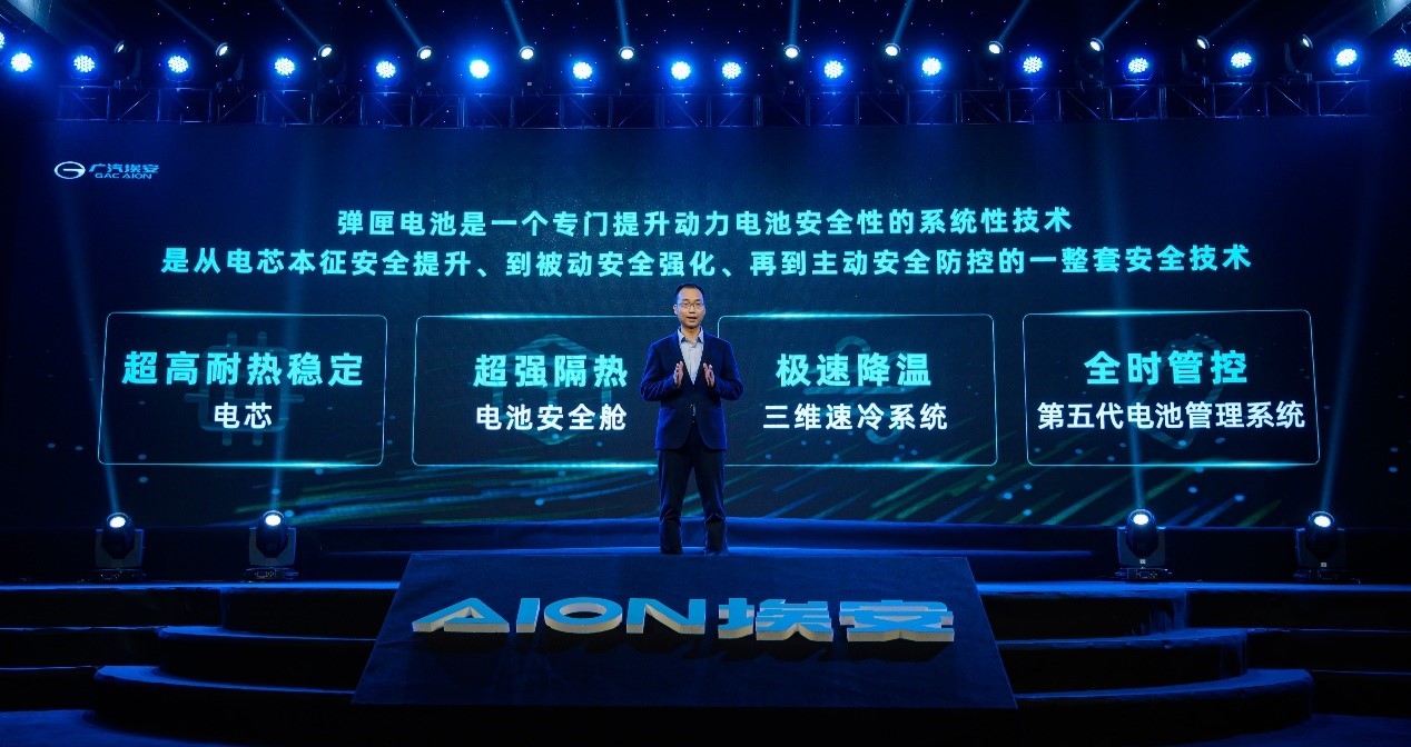 当前,全球汽车产业电动化的趋势已不可逆,电池安全问题不仅是消费者购买电动车考虑的重要因素,更是关乎新能源汽车产业健康可持续发展的核心基石。广汽埃安自成立以来,始终把产品的品质放在首位,怀揣对安全的敬畏之心,致力成为社会信赖的企业。 3月10日,广汽埃安发布新一代动力电池安全技术——弹匣电池系统安全技术(简称“弹匣电池”),行业首次实现了三元锂电池整包针刺不起火,攻克了公认的行业难题,重新定义三元锂电池安全标准。 (弹匣电池系统安全技术) 攻克三元锂电池安全难题,打造“不起火”的电池系统安全技术 目前,磷酸铁锂电池和三元锂电池是全球电动车行业的两大主流电池技术路线。磷酸铁锂电池因为寿命更长、成本更低,在中低续航车型中得到广泛的应用;而三元锂电池因为能量密度高、整车电耗低,主要在中高续航车型中应用。根据当前市场实际使用情况来看,磷酸铁锂电池、三元锂电池两种技术路线,在未来很长一段时间内仍将并行发展。 磷酸铁锂电池的安全性大家已相对认可,但三元锂电池的安全目前仍然是行业公认的痛点和难点。新能源汽车产业链相关企业也都在开展电池安全技术的课题攻关,而“不起火”电池技术则是电池安全最重要、也是最难攻克的一座堡垒。 为验证弹匣电池的安全性,中国汽车技术研究中心首席专家、国家电池安全标准起草人之一刘仕强博士带领团队,对搭载了弹匣电池系统安全技术的三元锂电池整包进行了针刺热扩散试验。试验结果显示,广汽埃安的三元锂(弹匣电池)整包在试验过程中热事故信号发出5分钟后,仅出现短暂冒烟,无起火和爆炸现象。静置48小时后,电压降至0V,温度恢复至室温。针刺后只有被刺电芯模块热失控,没有蔓延到其他电芯。打开电池整包,观察内部结构完好。这是行业首次通过三元锂电池整包针刺不起火试验,三元锂电池安全性取得了历史性的突破。 安全不止于“芯”,树立电池系统安全新标杆 如今,电动车行业对于整车安全的共识已由单体安全转向系统安全,提升电池整包的安全性能已成为行业的主流趋势。 当前电池自燃多由于电芯出现内短路,导致温度升高、电芯内部反应产热最终出现热失控,随后蔓延到整个电池包所致。电芯安全解决的是电池本质安全,而整包安全是以系统思维解决从电芯、模组到系统的全方位安全,相比电芯安全更为重要,也更难实现。 广汽埃安的弹匣电池,是一个专门提升动力电池安全性的系统性技术,它不是纯粹的结构优化,也不是简单的增加隔热,而是从电芯本征安全提升、到被动安全强化、再到软件主动防控的一整套安全技术,同时也是一个软硬件一体化、具备超高防御能力的智能安全技术。 基于“防止电芯内短路,短路后防止热失控,以及热失控后防止热蔓延”的设计思路,弹匣电池采用类似安全舱的设计,可有效阻隔热失控电芯的蔓延、当侦测到电芯电压或温度等出现异常时,自动启动电池速冷降温系统为电池降温。 弹匣电池具备四大核心技术: 一、超高耐热稳定的电芯。电芯通过正极材料的纳米级包覆及掺杂技术的应用,能有效提升热稳定性,防止热失控;电解液新型添加剂的应用实现了SEI膜的自修复,从而改善电芯寿命,降低电芯短路风险;高安全电解液,通过特殊电解液添加剂,在加热至120℃以上时,在活性材料表面自发聚合形成高阻抗特性聚合物膜,大幅降低热失控反应产热。这些关键技术的应用,使电芯的耐热温度提升了30%。 二、超强隔热的电池安全舱。通过网状纳米孔隔热材料和耐高温上壳体,弹匣电池构筑了超强隔热的安全舱,最终实现三元锂电芯热失控不蔓延至相邻电芯。同时,电池包上壳体能耐温1400℃以上,从而有效保护电池整包。 三、极速降温的速冷系统。通过全贴合液冷系统、高速散热通道、高精准的导热路径的设计,弹匣电池实现了散热面积提升40%,散热效率提升30%,有效防止热蔓延。 四、全时管控的第五代电池管理系统。通过采用车规级最新一代电池管理系统芯片,可实现每秒10次全天候数据采集,相比前代系统提升100倍,以24小时全覆盖的全时巡逻模式,对电池状态进行监测。发现异常时,立即启动电池速冷系统为电池降温。全时巡逻模式和异常自救的应用,重新定义了三元锂电池主动安全的标准。 弹匣电池虽然增加了大量的安全设计,但同时在冷却系统、电芯设计、整包布置等方面进行全面优化。搭载弹匣电池系统安全技术的电池包,相对于同类普通电池包,体积能量密度提升9.4%,重量能量密度提升5.7%,成本下降10%。因此,弹匣电池是在没有牺牲续航和提高成本的基础上,实现了高安全、长续航、低成本。 长期研发投入和技术积累,铸就80余项发明专利 广汽埃安之所以能在电池安全领域实现重大突破,主要源自广汽在电动化技术方面长期的资源投入和技术积累。早在2011年,广汽就开始了电动化技术的研究应用,并推出了国内首款中重度混合动力车型。在电动化技术研究方面,广汽的研发已经超过了10年,并形成了大量的技术成果和人才储备。 弹匣电池由广汽研究院、广汽硅谷研发中心、世界顶级电芯专家领衔开发,超过600人组成的国际顶级研发团队倾力打造,其中博士超过60位,体现了广汽埃安电池安全的最高技术水平。广汽从动力电池过流保护、电池热抑制方法、电池热失控监控及预警等方