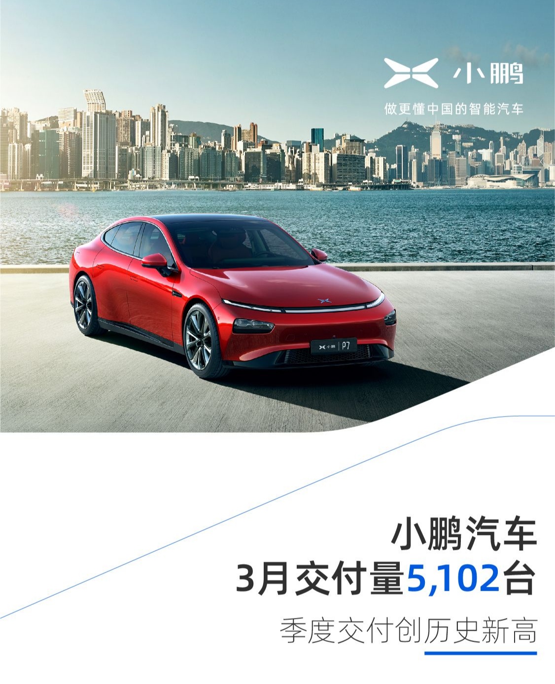 【2021年4月1日】小鹏汽车公布了2021年3月交付成绩。3月总交付量5,102台,环比增长130%,同比增长384%。其中,P7交付2,855台,环比增长103%;G3交付2,247台,环比增长176%。月度总交付量已连续9个月实现同比翻番。