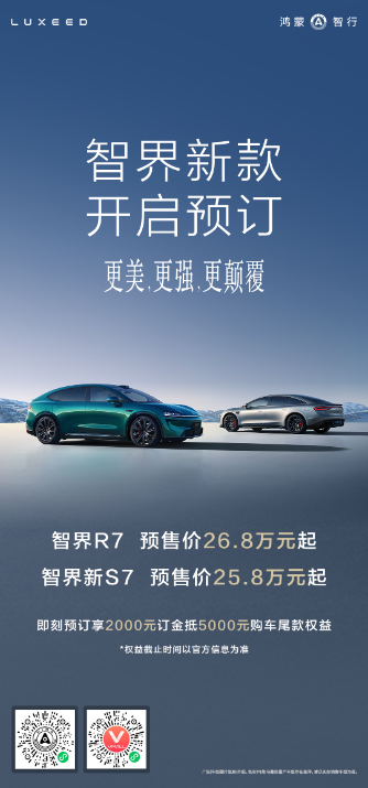 8月8日新款智界R7和智界新S7开启小订,1小时订单破万,8小时订单突破20000台,反映出用户对这两款新车的认可。焕新升级的智界R7和智界新S7将于8月25日在成都正式发布,为广大年轻用户解锁一场更美、更强、更颠覆的全新旅程。新车首次搭载智界最新图形车标,并在外观内饰方面带来诸多升级,如极光绿新色搭配双层清漆工艺等。同时,驾驶辅助硬件新增后向高精度固态激光雷达和 4D 毫米波雷达,让用户在复杂天气下出行更加可靠安心。特别值得一提的是,新款智界 R7 还搭载了主副驾双零重力座椅,具备 123° 真零重力、110mm 加厚发泡坐垫、超长腿托可加热等功能,一键即可直达云端 SPA。 ![]() 首家鸿蒙智行·智界用户中心的快速落地,叠加新款车型的即将发布与未来新品规划,标志着智界品牌战略 2.0 正以 “服务升级 + 产品创新” 的双轮驱动姿态,重塑高端智能汽车市场竞争格局。随着首家鸿蒙智行·智界用户中心布局的逐步完善以及产品矩阵的日益丰富,智界汽车在为用户带来颠覆性出行体验的同时,也将有力推动品牌实现跨越式发展。 |